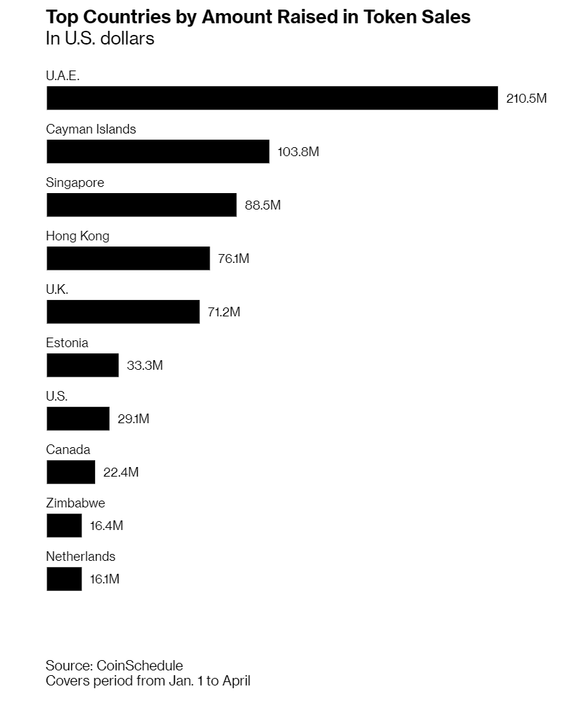 블룸버그에 따르면 두 건의 대형 토큰 세일이 UAE의 순위에 기여했습니다.