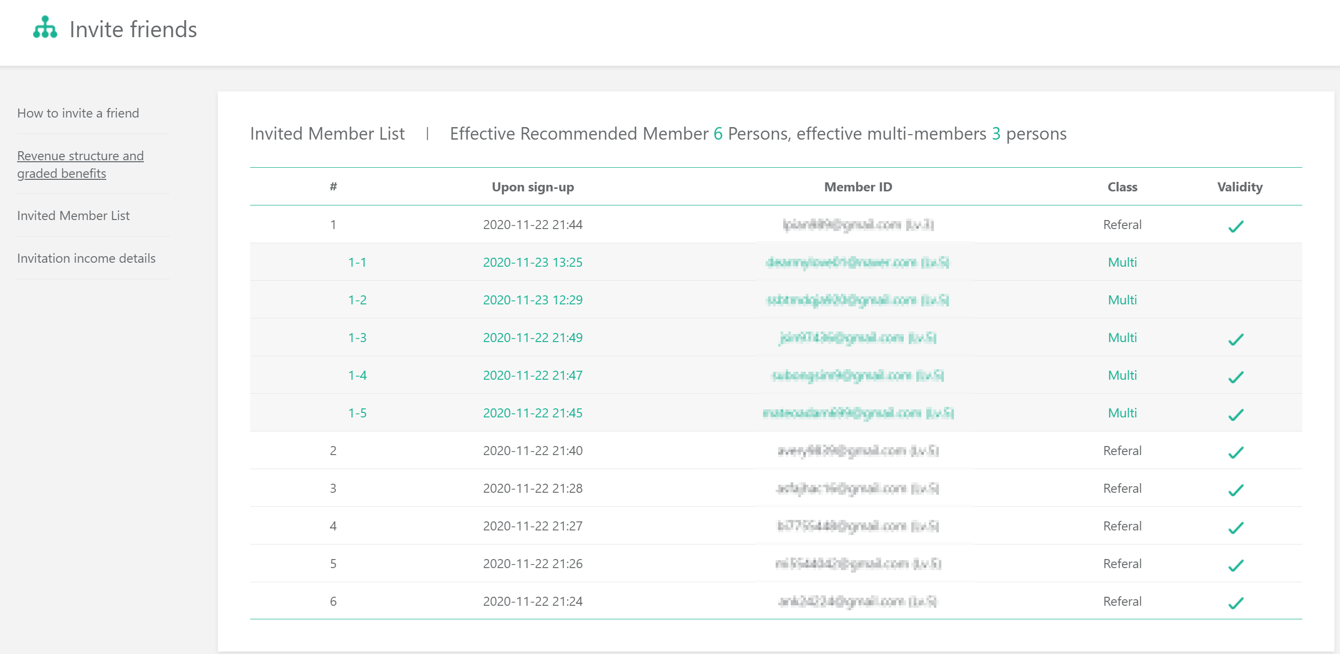 ● There is no limit to the number of people you can recommend. You can recommend as many people as to maximize income.