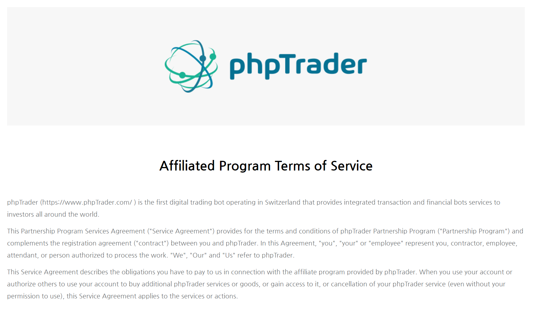 ● phpTrader Affiliate Program Terms and Conditions