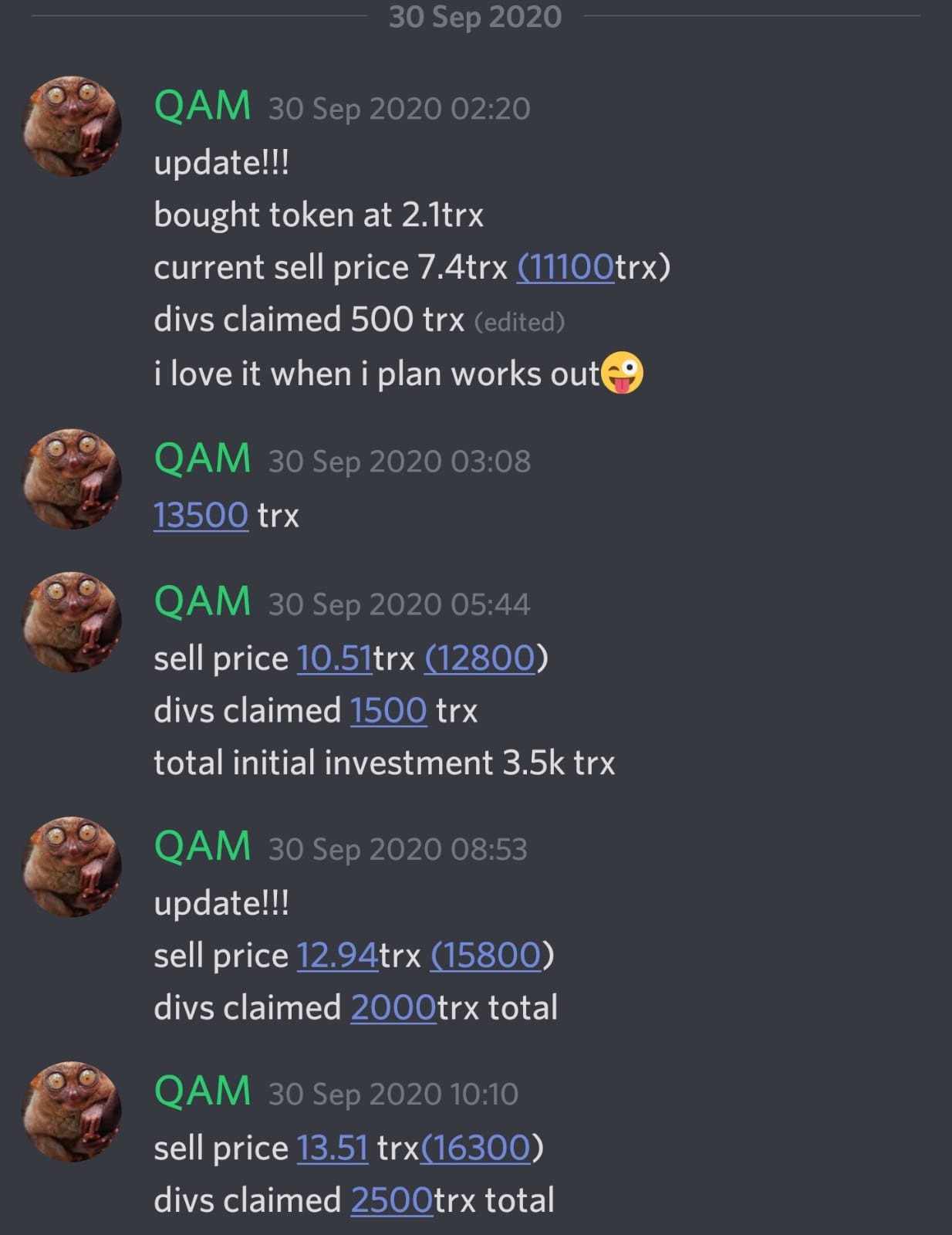 I wish i had put more in. After just 3 hours i was up over 3x and it never looked back the divs kept flowing and the price kept pumping. Eventually i withdrew over 20k tron way more inc divs.