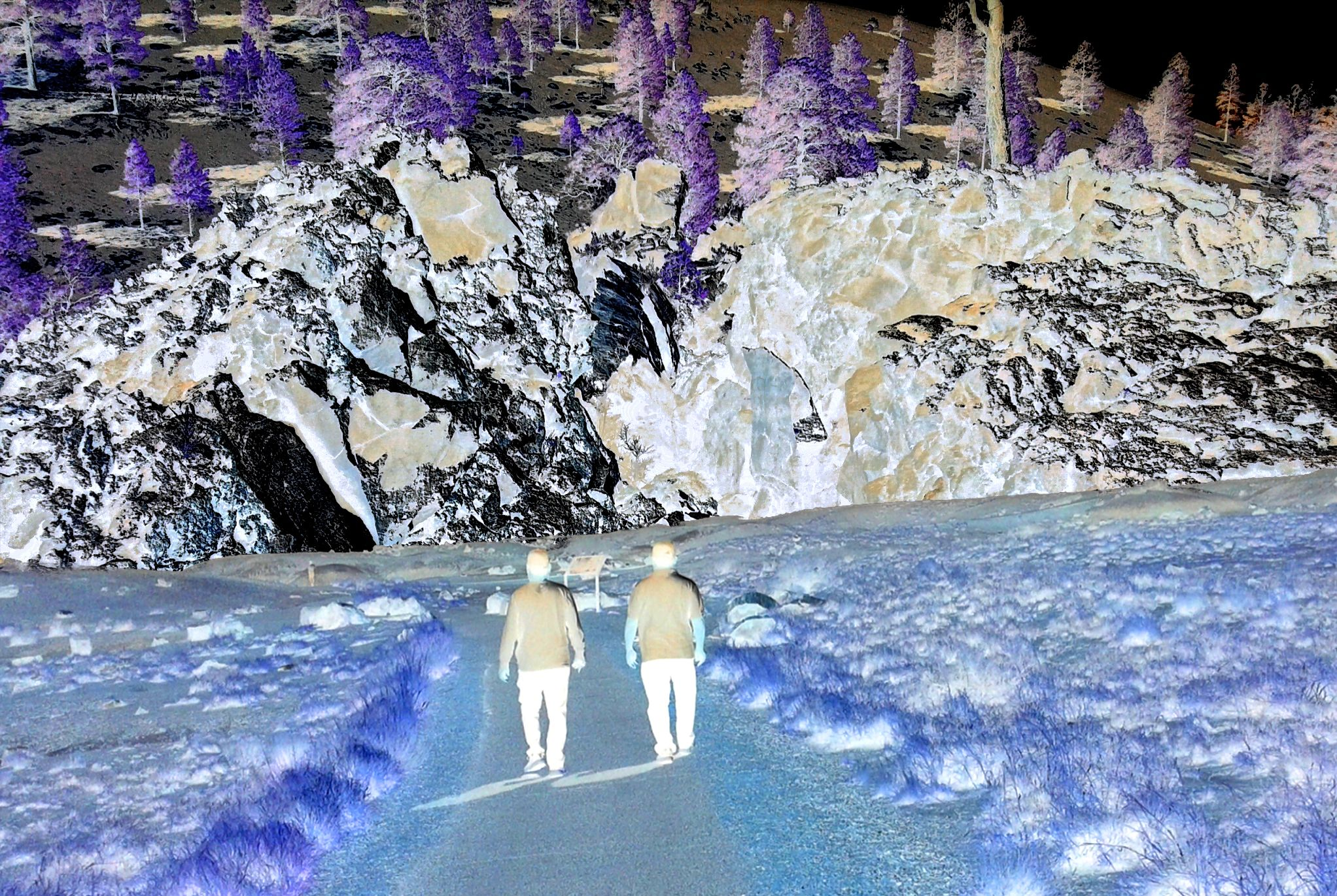 I took this trip with my Dad and Uncle to the southwest, Arizona and New Mexico. It all started because my Dad wanted me to take pictures of him and his brother. As I was taking pictures, I started to play around with filters, saturations, contrasts and then with effects afterwards. As the visions unfolding, and pieces of fleeting words came to me. I figured I will try to capture the mosaic of reality, emotions and perceptions that was unfolding as I go deeper into the Crystal Forest...