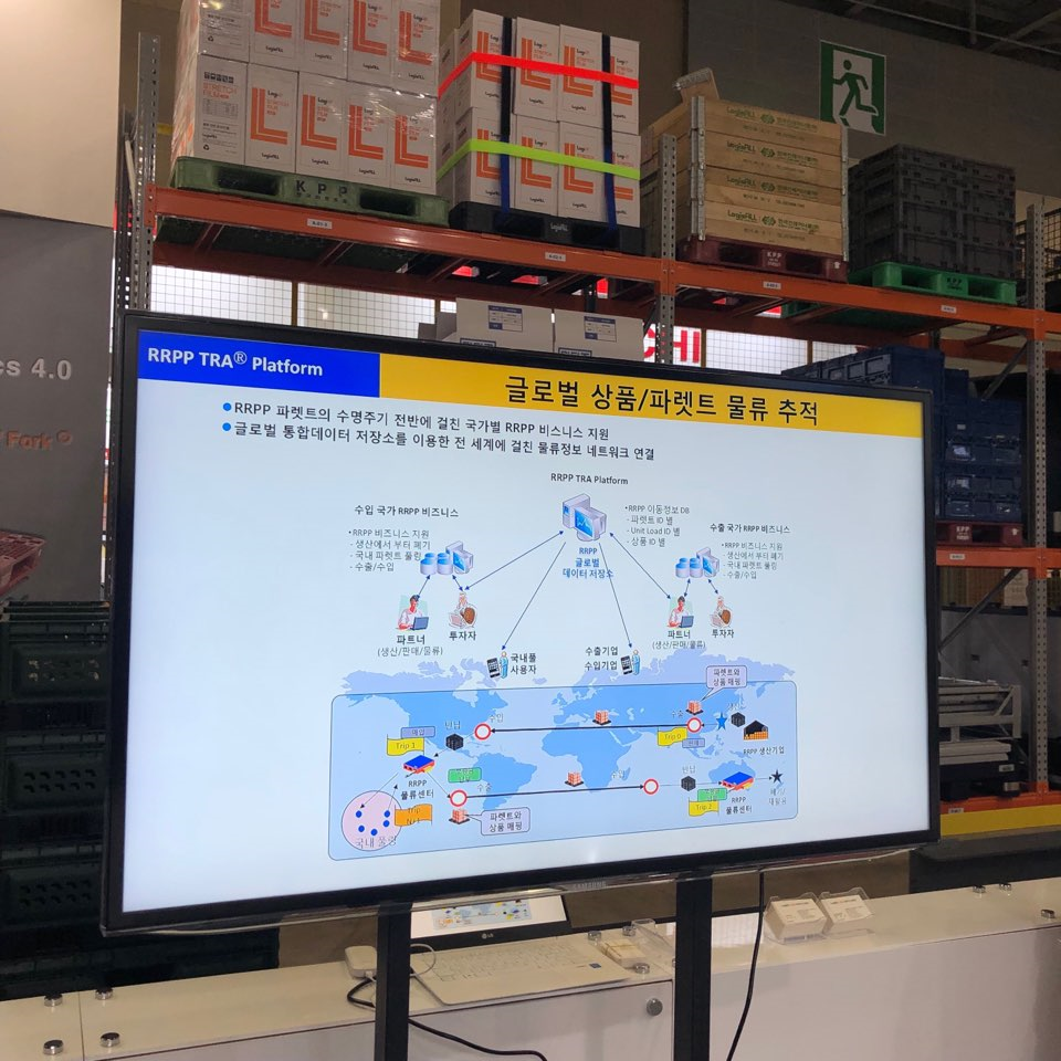 한 편, 한쪽에서는 RRPP PooL 시스템 도입을 해주는 회사도 있었습니다. 위의 동영상은 사업설명과 개요입니다. 물류 용기를 제공하는 업체이고, 토탈 물류서비스를 제공하고자 했습니다.