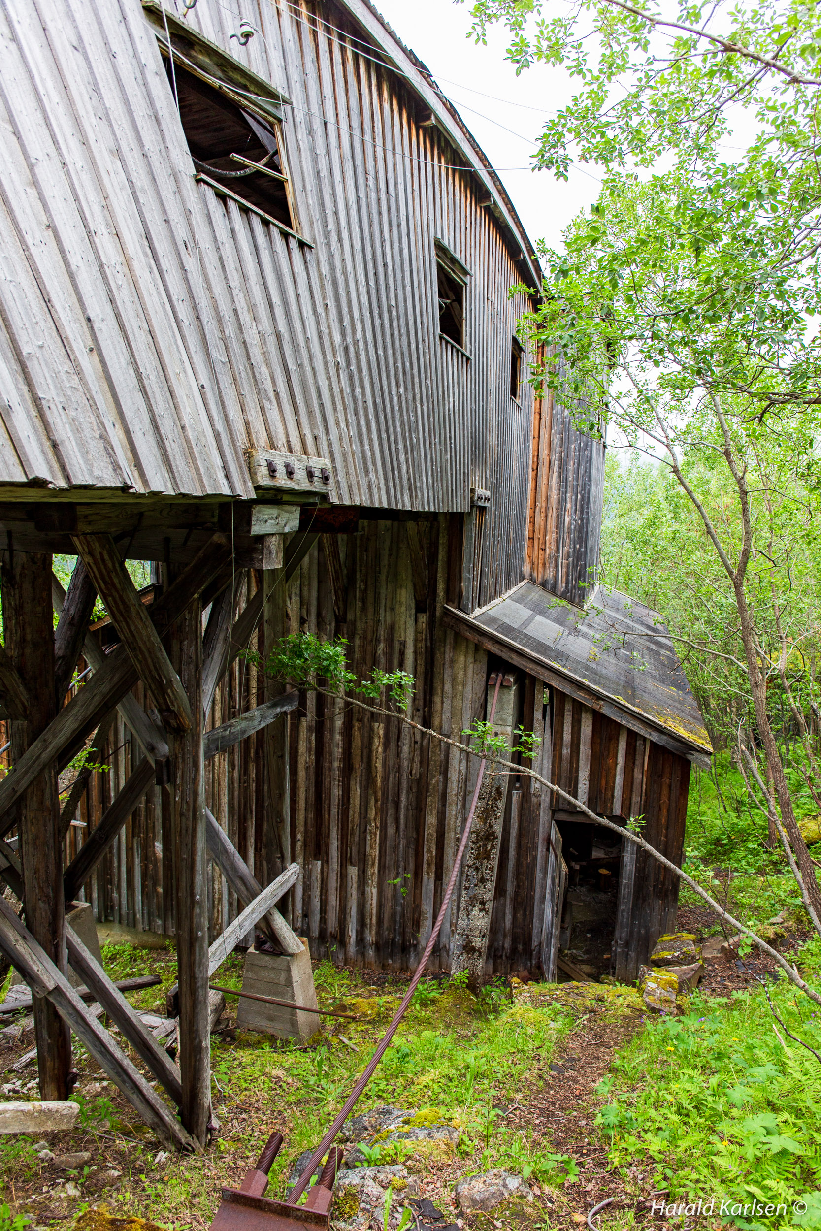 The 16 workers and 1 chef lived in barracks at the daybreak. Among the many abandoned mining facilities and quarries in Ofoten, "Quartz" is perhaps one of the most exotic and complete. In the construction area you can see crew barracks, forging, and air compressor housing. At the cable car station you can see electric motors and the loading equipment. In the quarry stands the cradles and lavettes. The loading ramp is dilapidated.