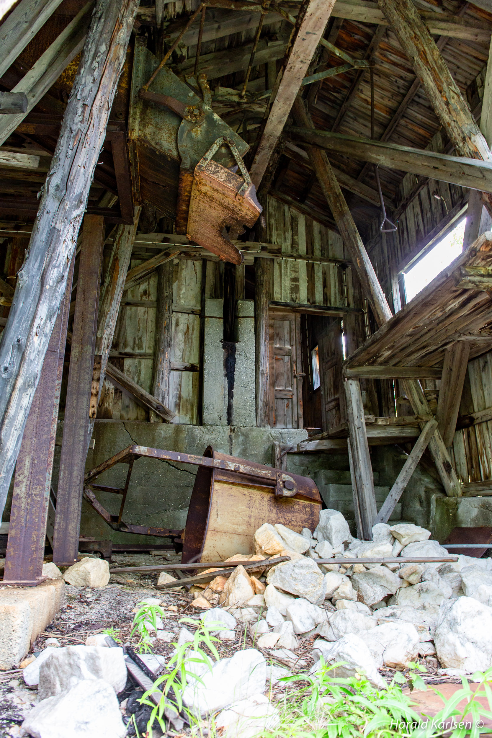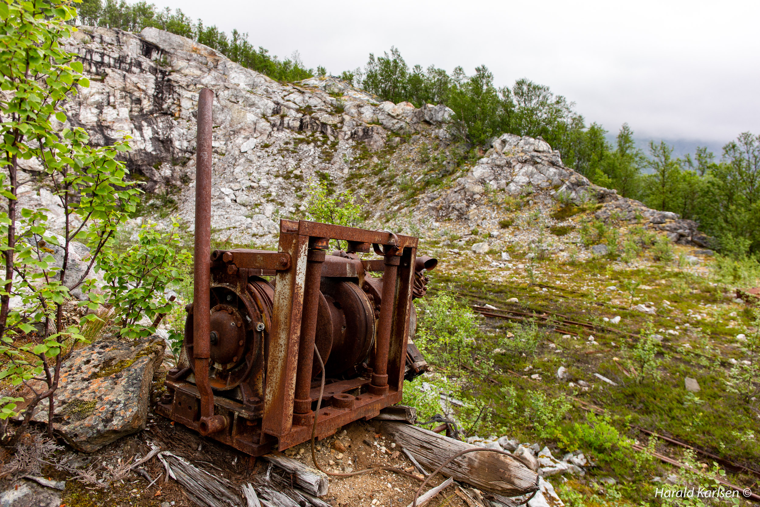 When the operation stopped, the mine was abandoned and a lot of equipment was left behind. Some of this is still around and tell a little about the story of the site.
