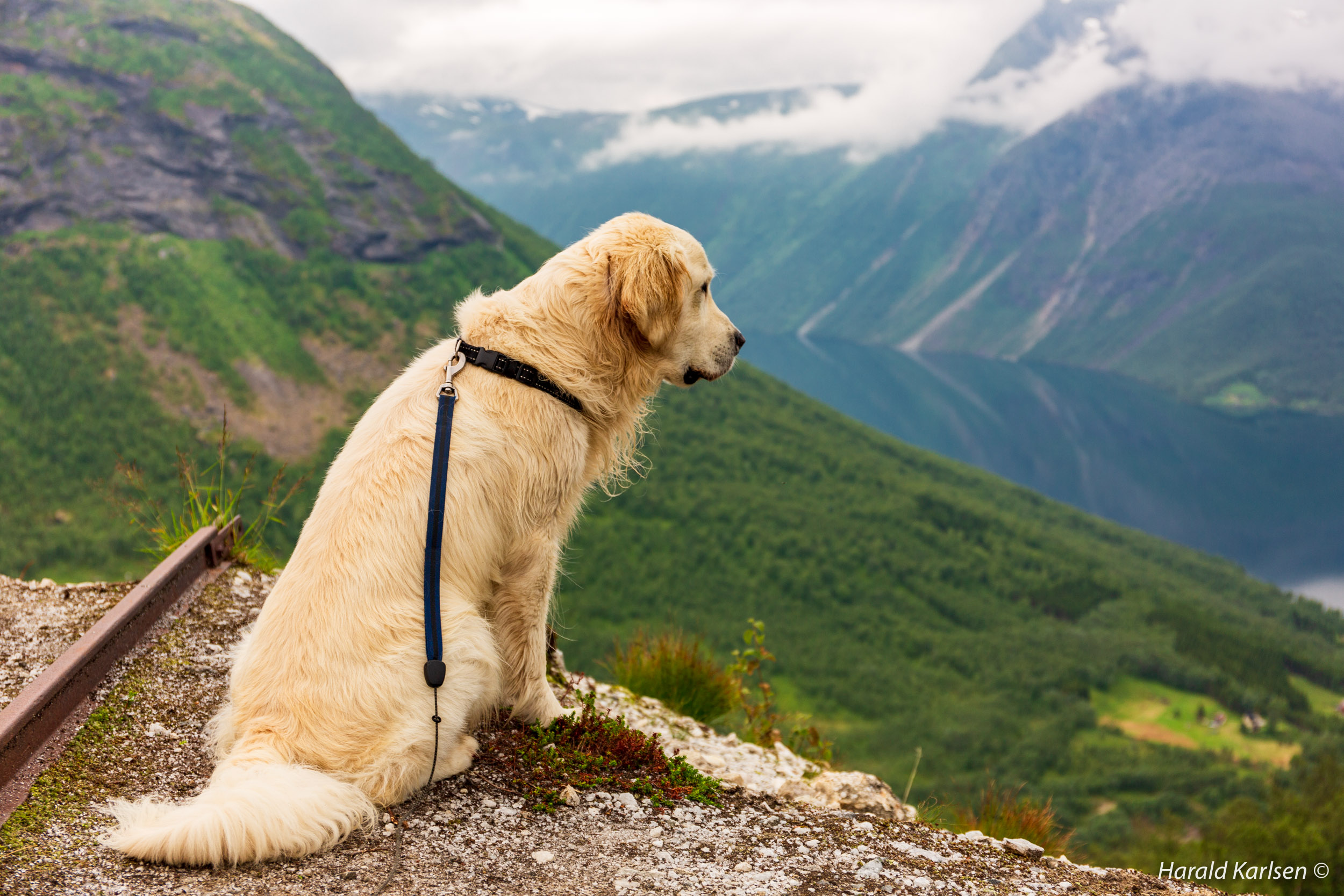 Nero enjoying the view towards the valley on the edge of the dumping area.