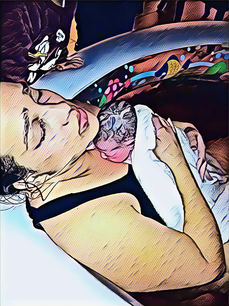 הוא לא מספיק לנתק ובציר אחד מחליקה אל ידי התינוקת המושלמת שלי...אל תוך המים החמימים ובאינסטינקט שאפילו לא חשבתי עליו אני מושה אותה מהמים בתנועה מהירה ומניחה אותה על חזי כשאני נשענת על דופן הבריכה. השעה קצת אחרי 8 וחצי בערב. 3 שעות מהצירים המשמעותיים הראשונים היא יצאה לאוויר העולם.