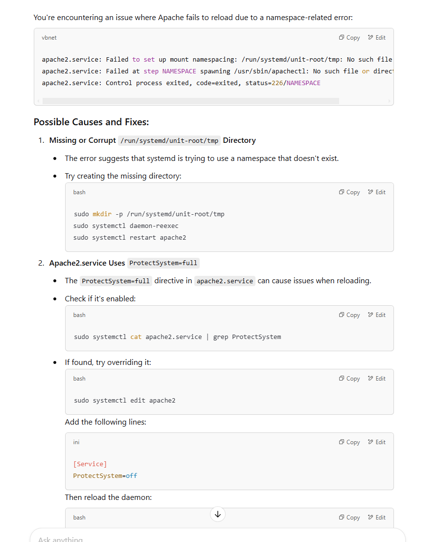 Apache2 Stopped due to Namespacing Error