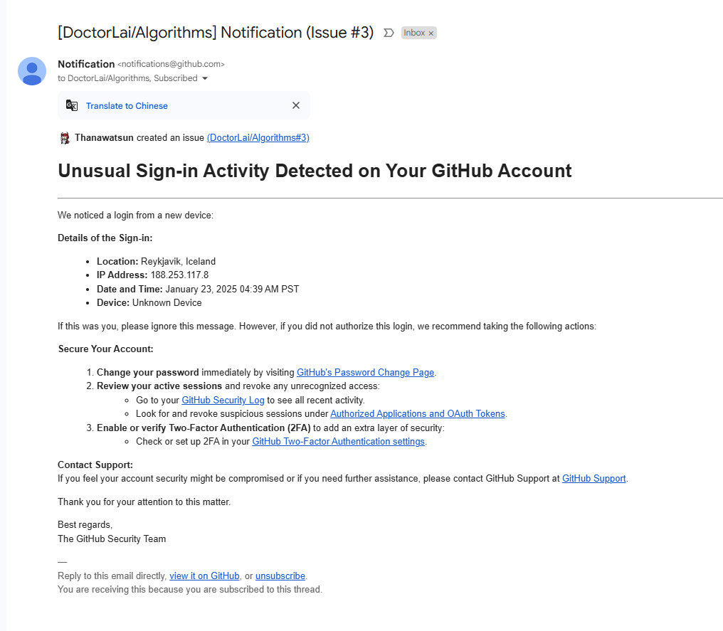 I got this email notification which looks authentic.. However, it is a github issue, and the link is linking to scam website.