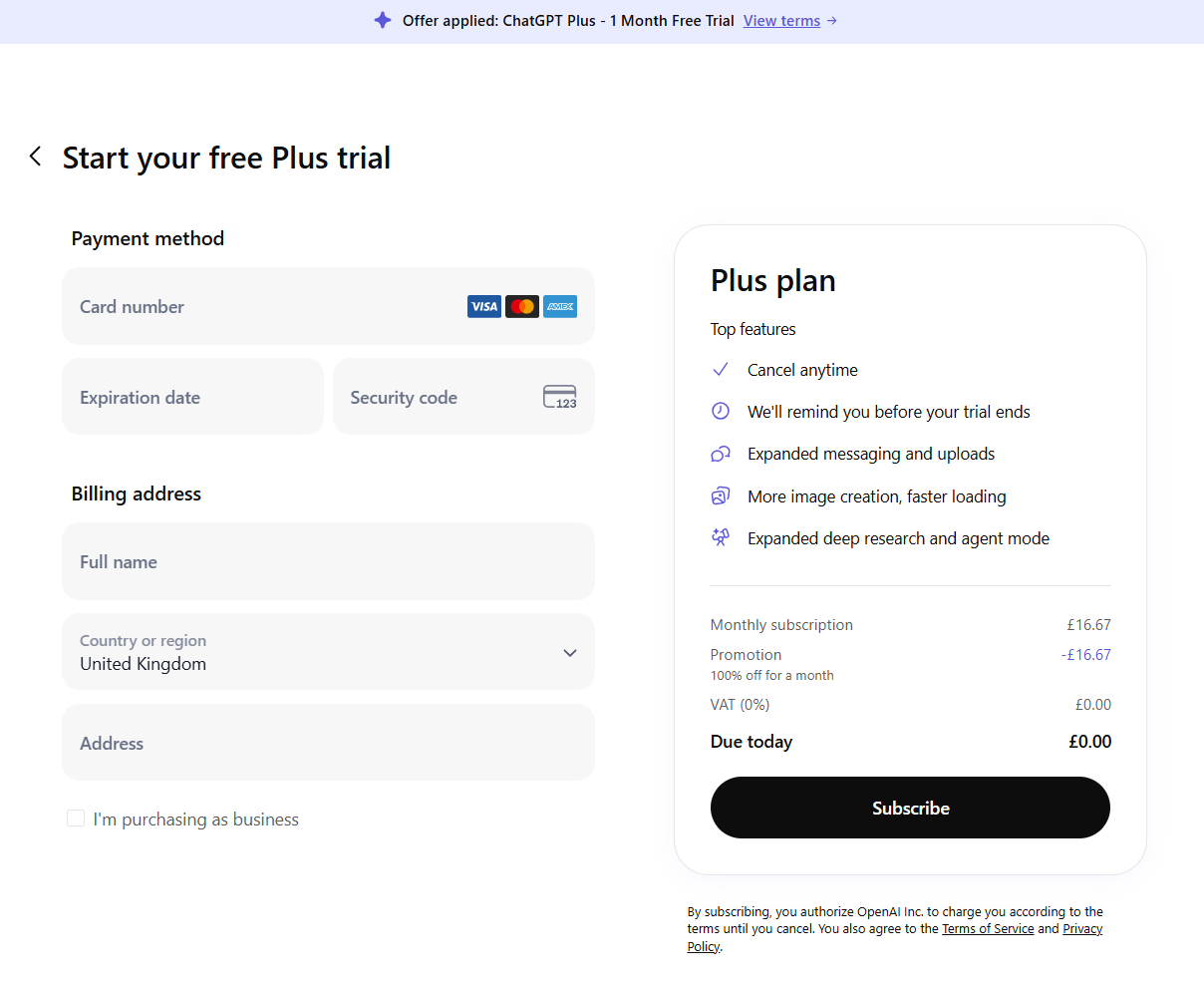 ChatGPT provides 1 month free trial