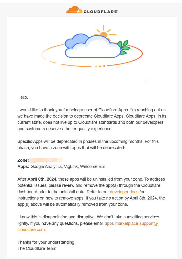 Cloudflare Apps Deprecation