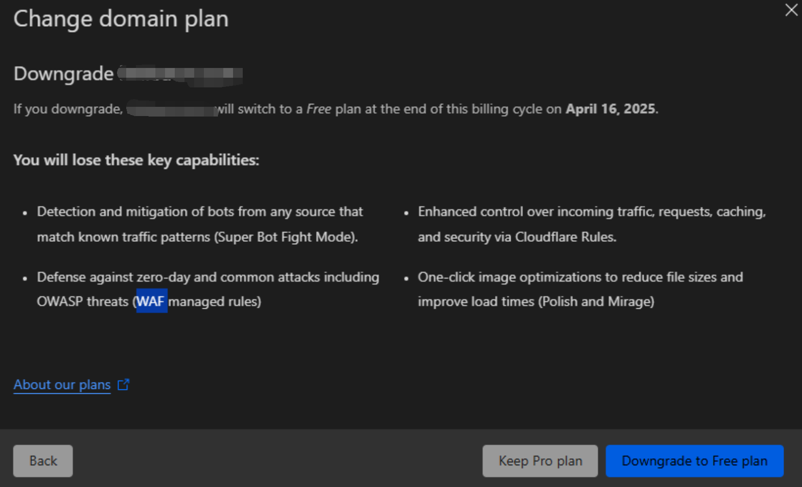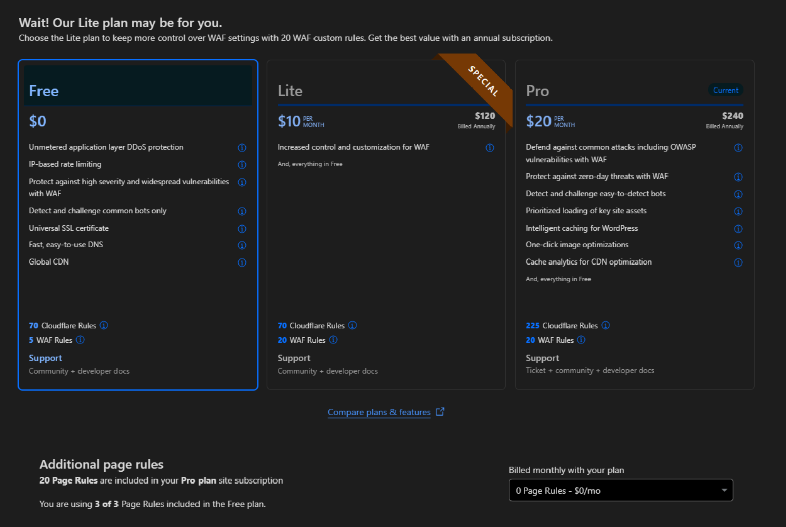 CloudFlare has introduced a "Lite" plan which costs 50% of the "Pro" with some limited add-on features.