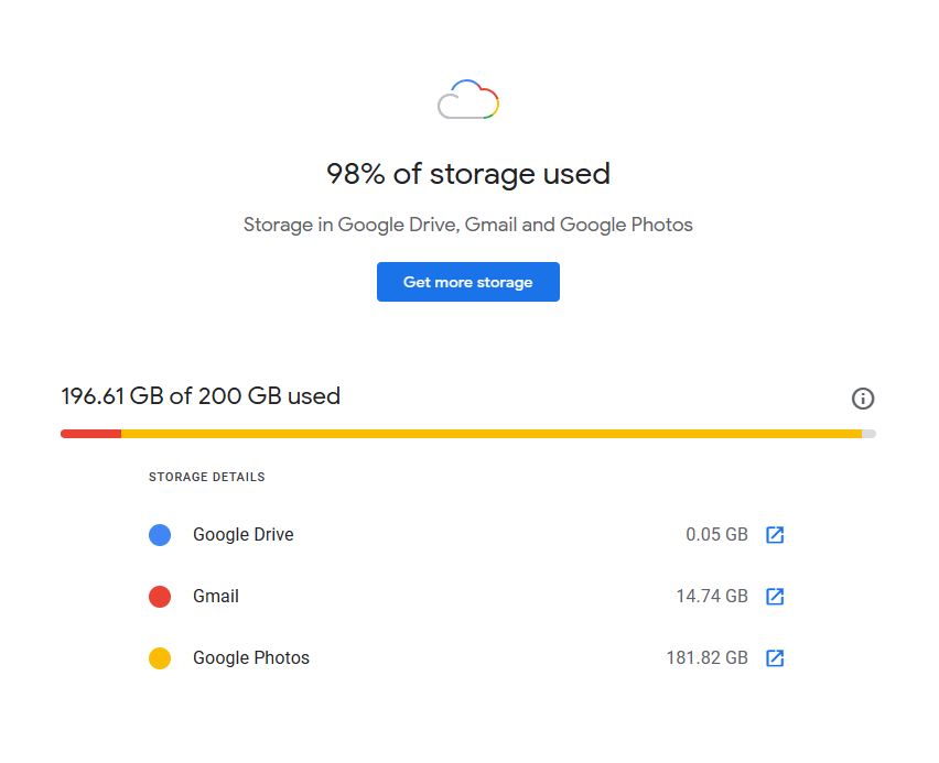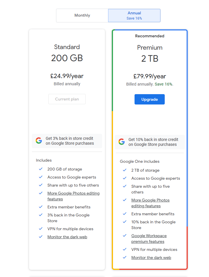 I paid 24.99 GBP per year for 200GB Google One, but it seems getting close to the limit because of my teaching videos.