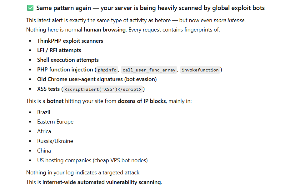 One of my server was hit by many automated bot scanners from many different IPs across many countries.