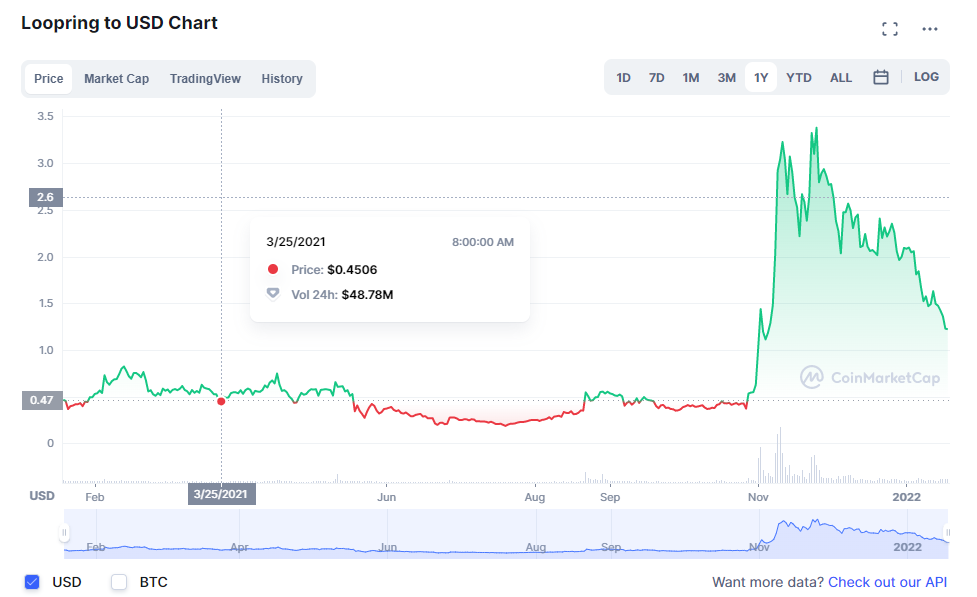 One of the hyped up coins last year was LRC after Vitalik talked about ZK coins and how they were something to look at. That sparked a hype cycle and at one point, LRC shot up from 50 cents to $3. Unfortunately, progress is rarely a straight line and now it has dropped down to the dollar range and might even go below that in the days to come.