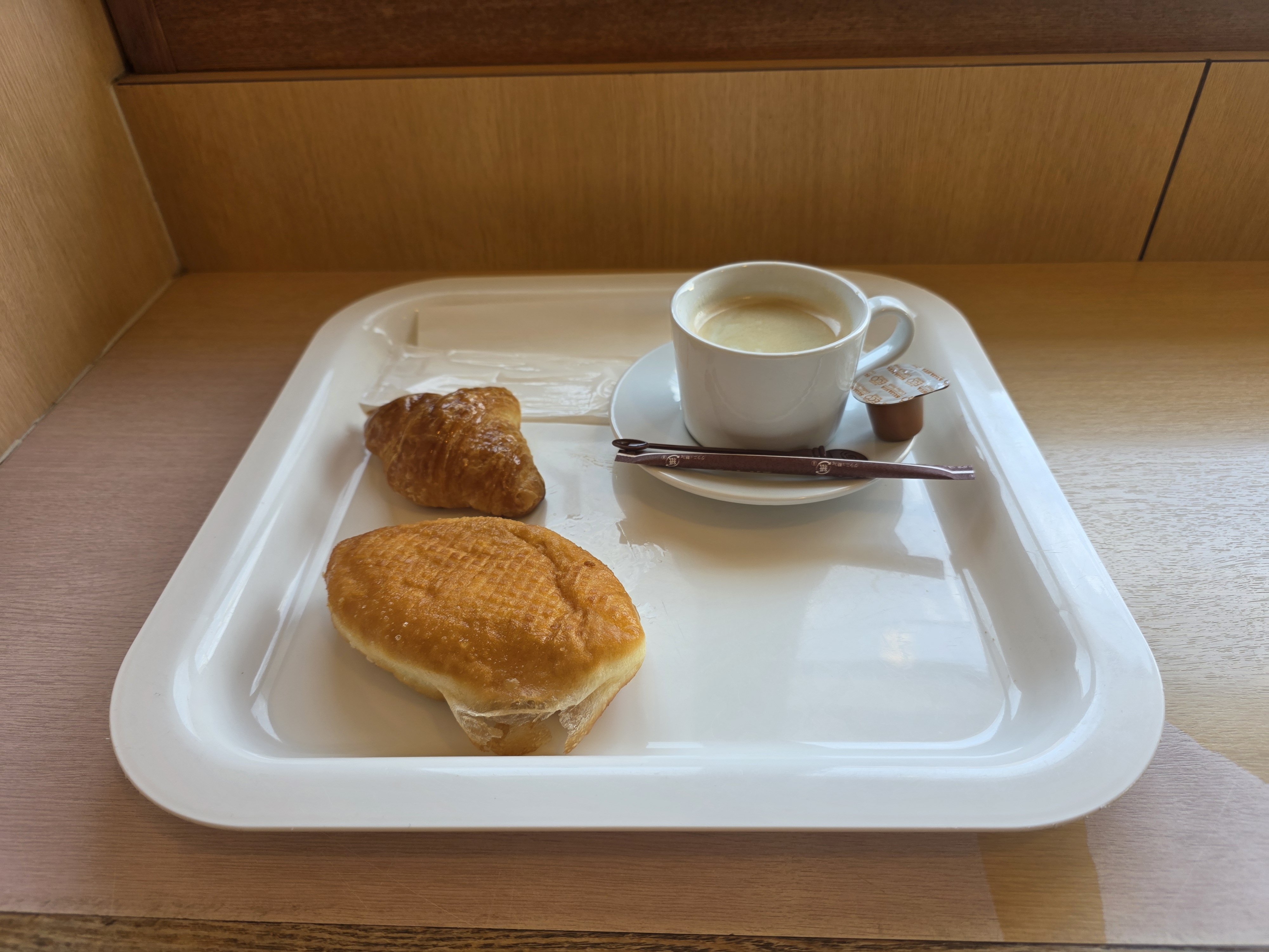 写真はピロシキ、ミニクロワッサンとコーヒーです。