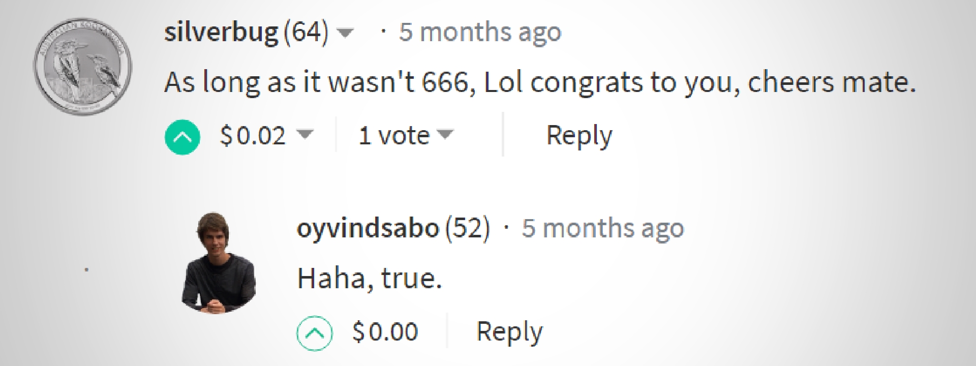 Interestingly, @silverbug commented the following comment on my 222 followers post: