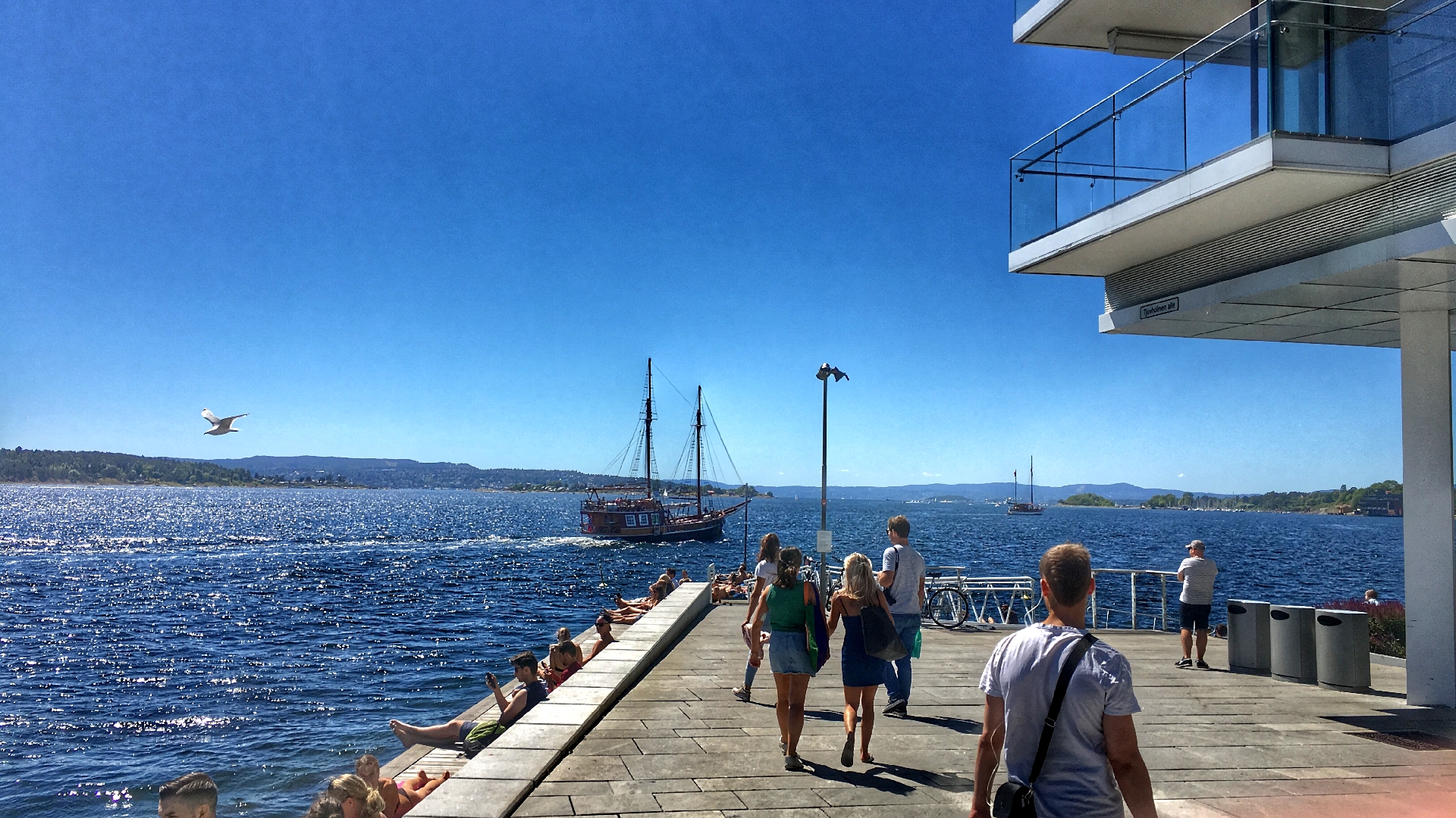 Looking back, I have no idea why I didn't take a picture of Nationaltheatret, but I believe it was the building which is barely visible at the right in the picture above. We walked towards a part of the city called Tjuvholmen. To be fair, I'm not sure if it was Tjuvholmen, but I've heard that Tjuvholmen is a nice place, and the place we went to was nice, so while my logic doesn't appear to be logic... Okay, just bear with me. We'll get there.