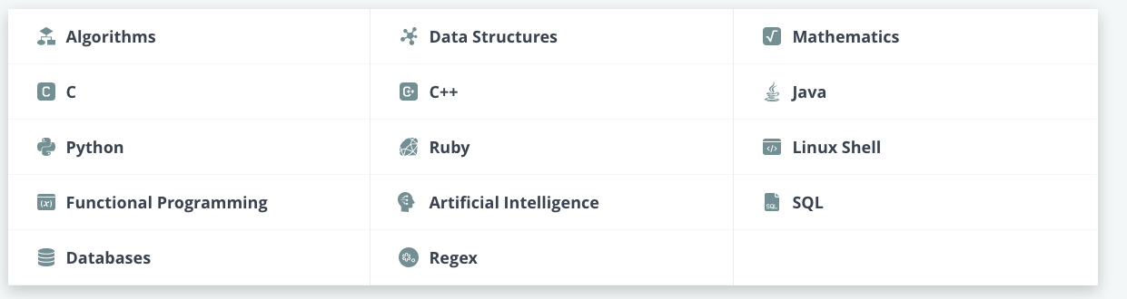 If anyone of you are interested in using Hackerrank, you should sign up. They have practices available to help improve your software development knowledge. Here are some skills they have available for practice