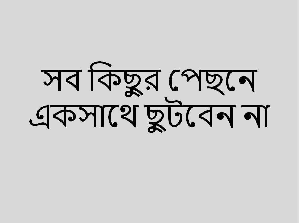 আবার আমরা অনেকেই আছি যারা একসাথে অনেক কিছুর পেছনে ছুটি, যে একটাতে সফলতা না আসলেও অন্যটাতে আসে এই আশায়। কিন্তু আপনি যদি সব কিছুর পেছনে একবারে না ছুটে আপনি যে কাজটা ভাল পারেন , ভাল বোঝেন সেই কাজটাই করেন। তাহলে আপনি খুব তাড়াতাড়ি সফলতার দাড় প্রান্তে পৌছাতে পারবেন।
