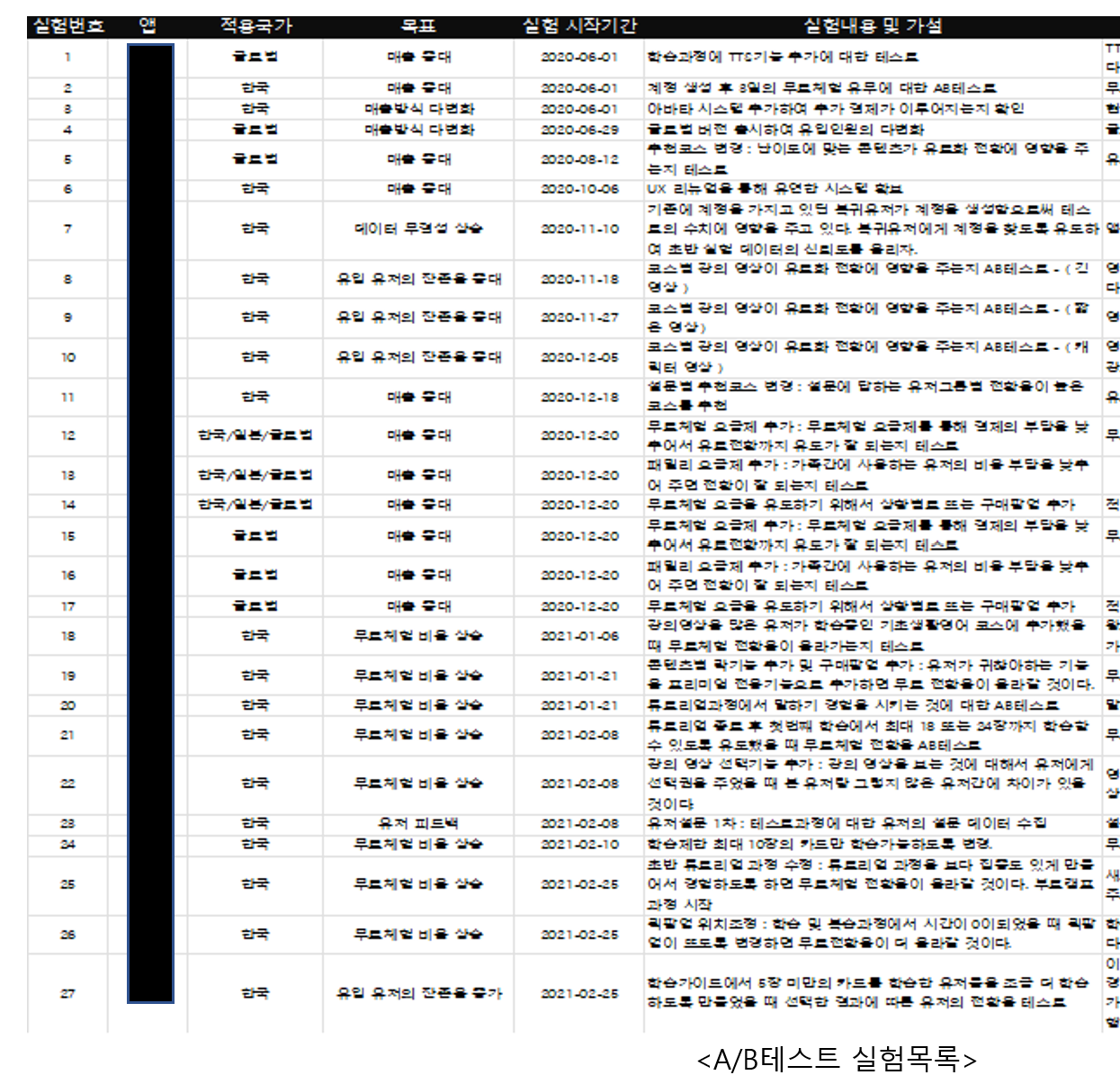 우리의 예를 한가지 들어보자면, 지난 몇 년간 정말 실험을 열심히 했다. 100여번 이상의 크고 작은 개발 업데이트를 했는데