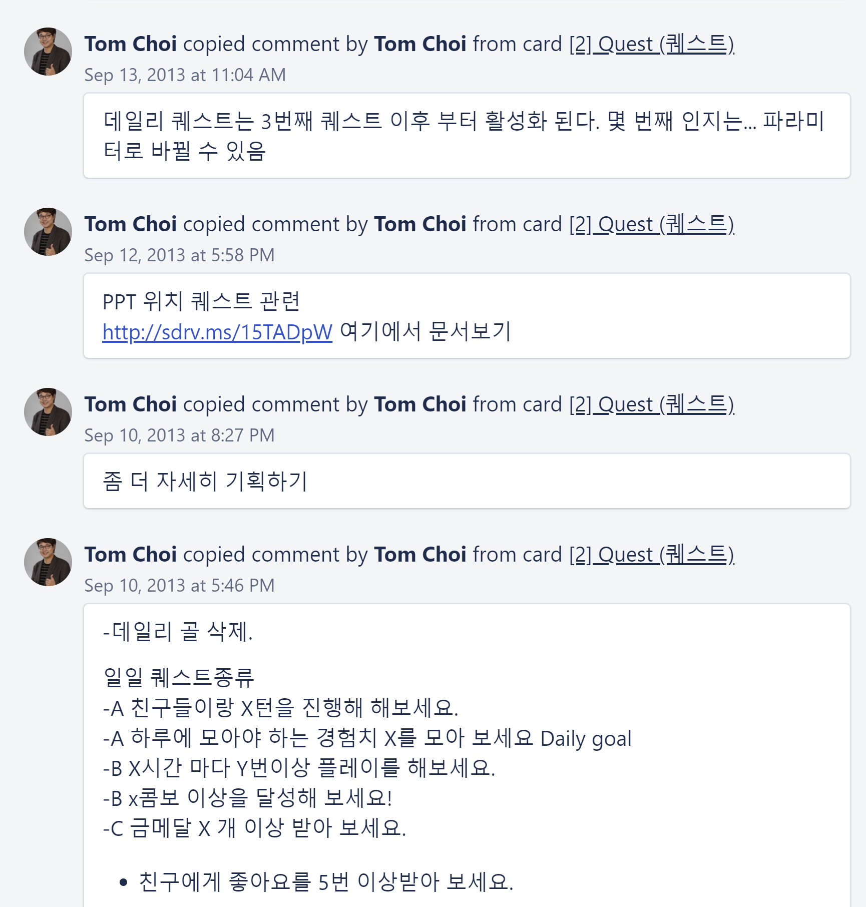 일에 대한 다양한 사람들의 글을 댓글 형태로도 남길 수 있다.
