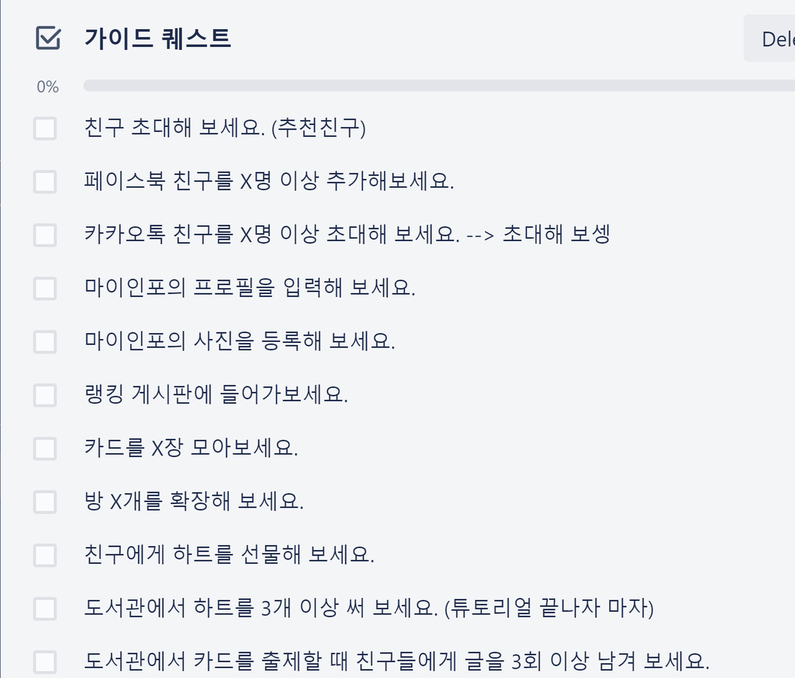 이쪽은 하나의 테스크를 해결하기 위해서 필요한 체크리스트를 넣어볼 수 있다.