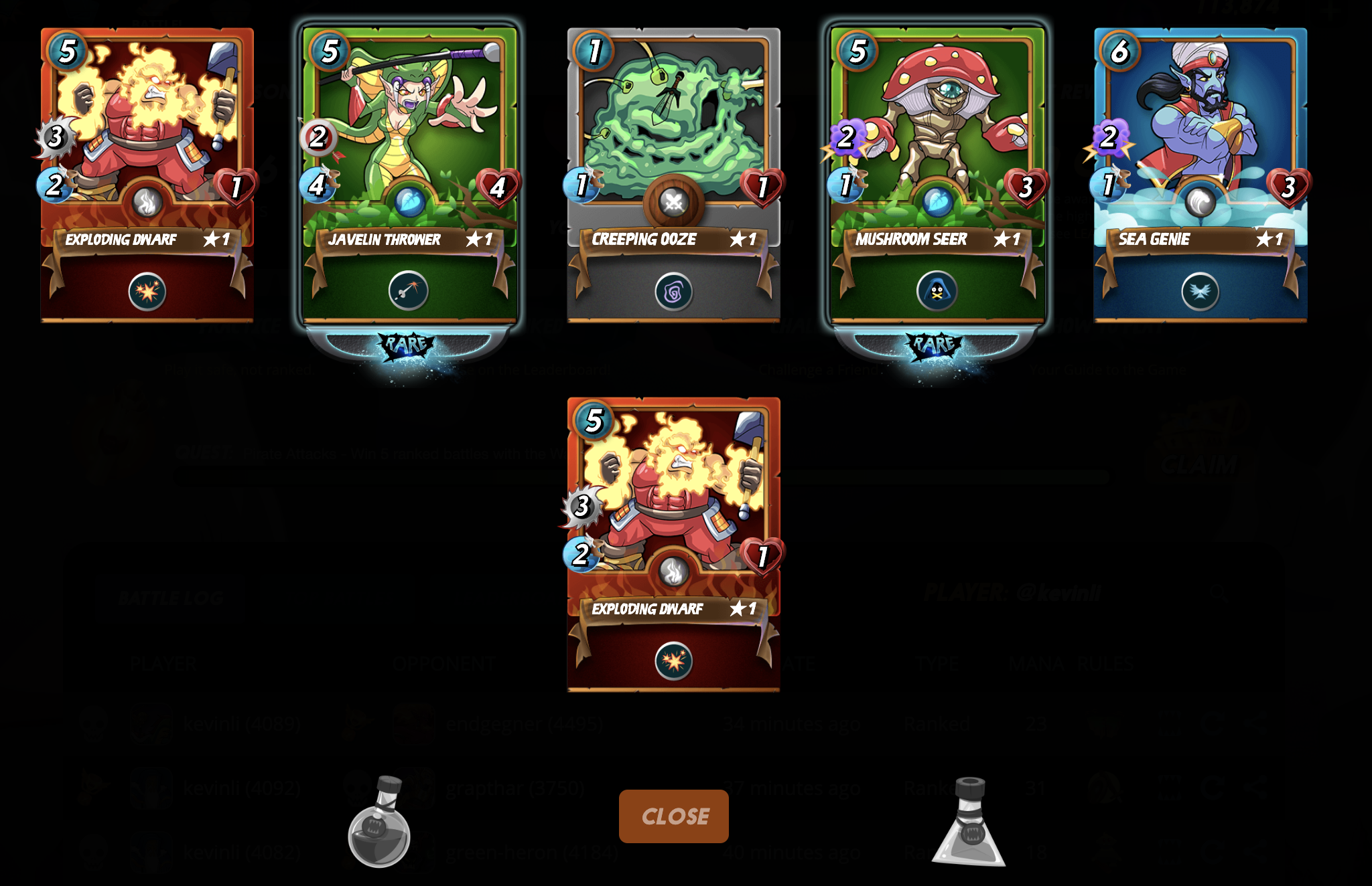 I surprisingly have been winning the daily quest easily with the water. Guess with the uprise of Prince (Overpowered) Rennyn and a lot of users using cocatrice over lord anus these days, it leaves magic attackers favorable. I also won 20 steem from a tournament #KaChing