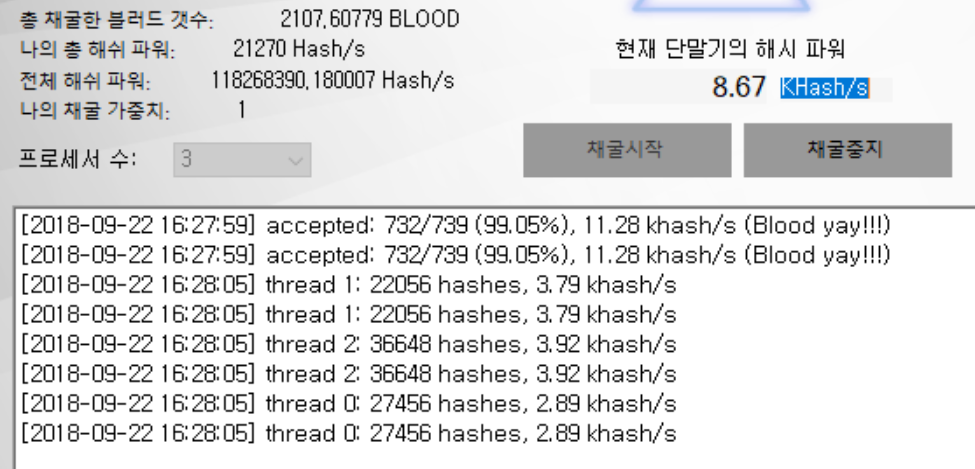 [마이닝] 블러드(BLOOD) 코인 채굴~~
