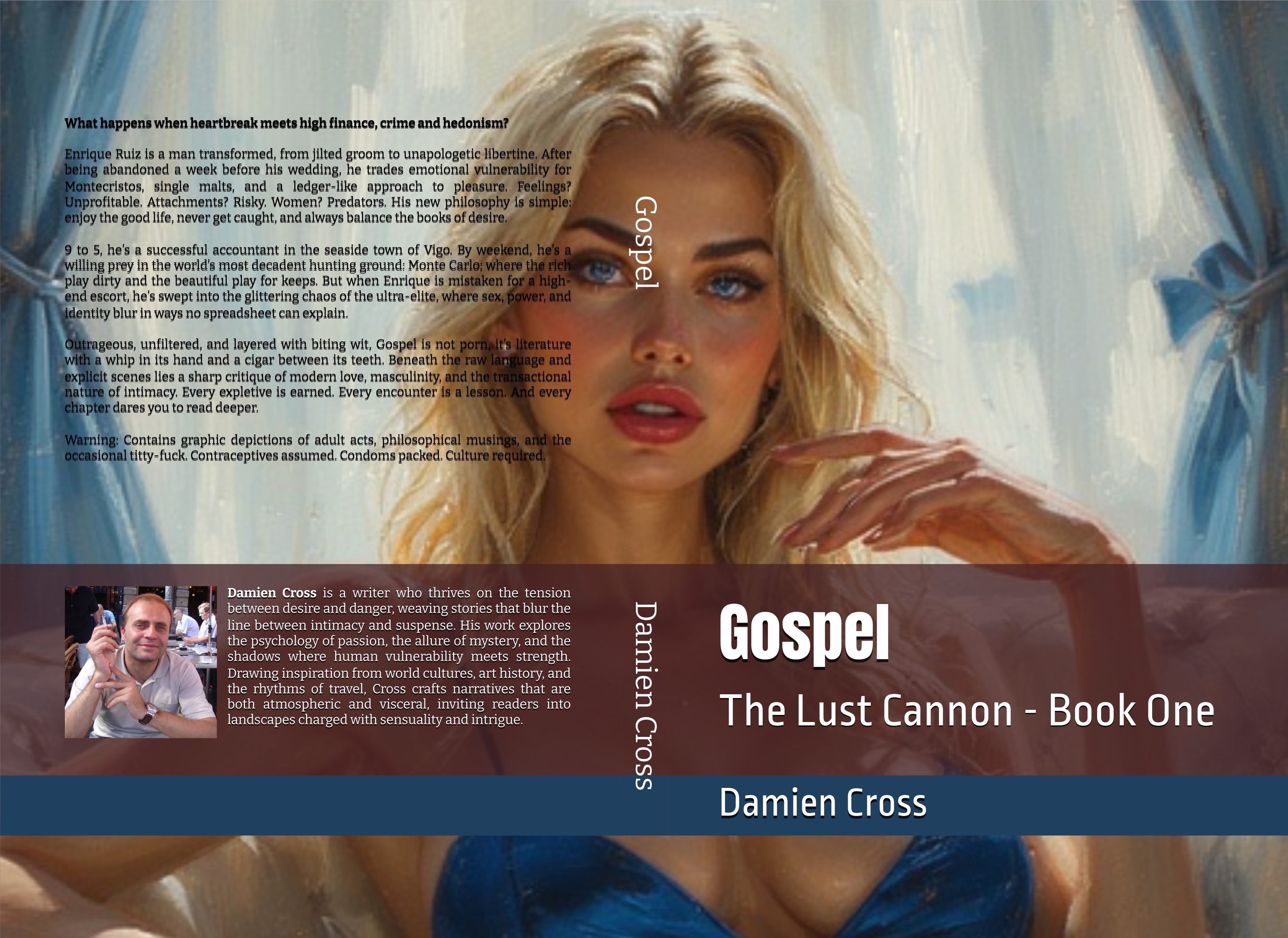 The author: Damien Cross is a novelist who thrives at the intersection of sensuality, intrigue, and psychological depth. His work blends the cadence of music with the architecture of literary thriller, creating narratives that are both commercially compelling and artistically daring. Unafraid to confront desire and taboo, Cross uses explicit encounters not as ornament but as revelation, exposing the fractures of power, intimacy, and human ambition. With The Lust Cannon series, he establishes himself as a fearless voice in contemporary adult literature. A writer who challenges, seduces, and refuses to be ignored.