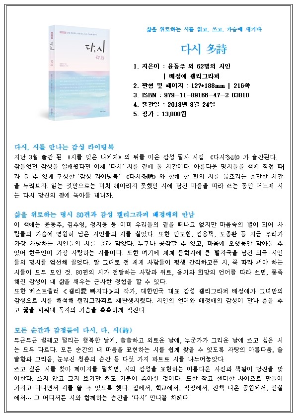 곧 다가올 감성폭발 천고마비의 계절 다시(多詩) 시집과 감성충전해보세요^^