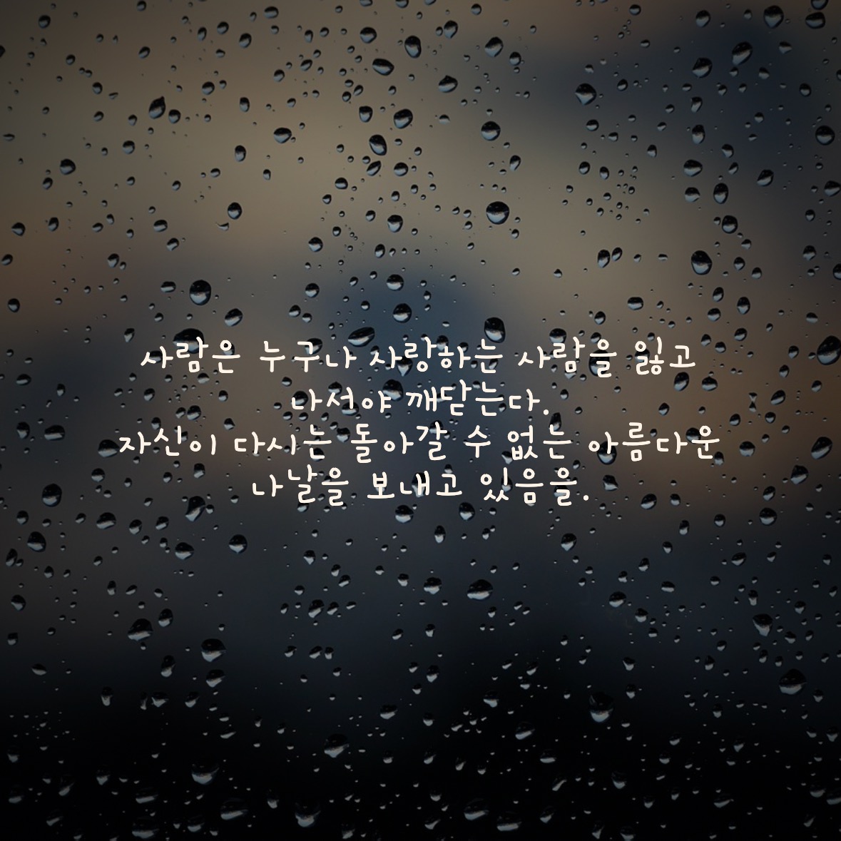 글기록-세상의마지막기차역steemCreated with Sketch.sksms1 (40)in #book • 7 months ago 이 도서는 [세상의 마지막 기차역]에 수록된 글 입니다. Everyone loses a loved one You don't realize it until you realize it. A beautiful thing that you can never go back to I'm spending my days. 좋은글 기억에 남는 글 기록 입니다. 세상의 마지막 기차역. 무라세다케시저자. #life #read
