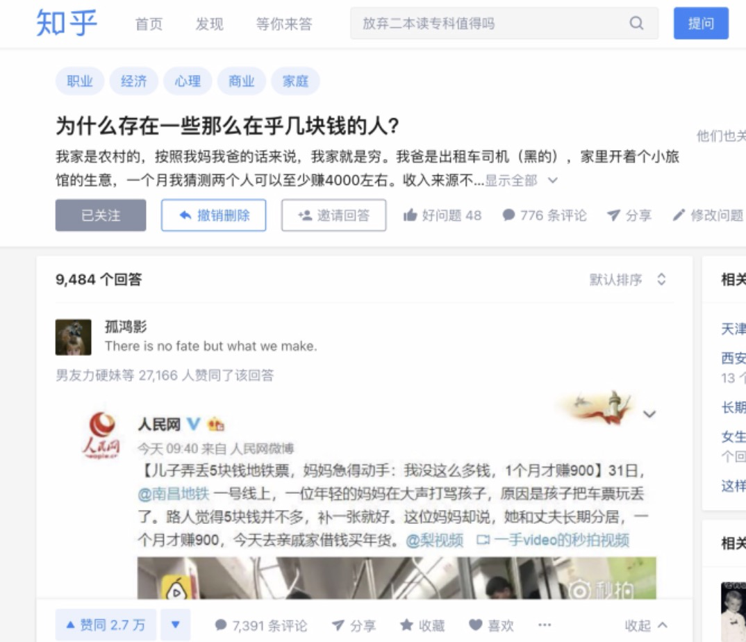 人们的注意力是非常有限的,当一个人受困于租金、生活费用、交通费用和996的工作时,他就不会有多余的精力去考虑其他同重要的事情。