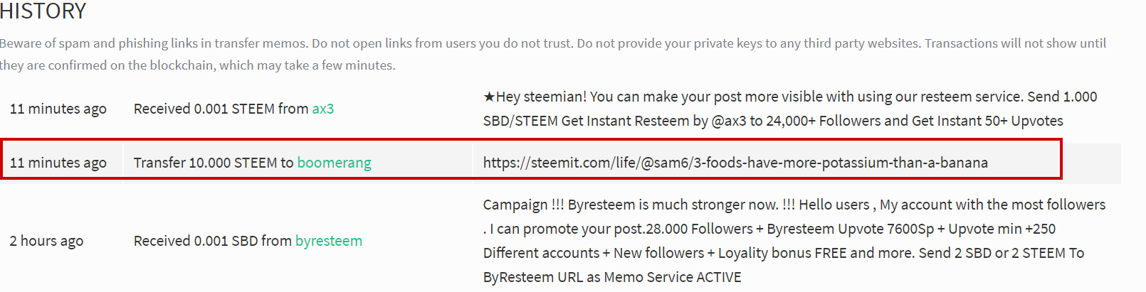This is transaction history.