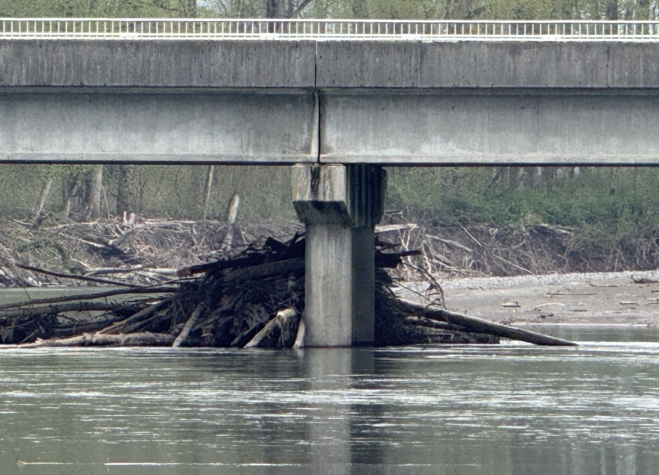 Upon closer inspection-get a look at how high the debris pile was at the bridge! A couple more feet or so and the debris might have been forced onto the bridge! Crazy!