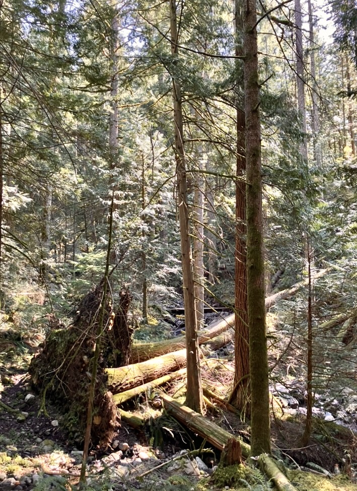 Young Douglas Fir, and Western red Cedar seedlings were planted here, just like the loggers planted on the clear cut at the top of Silvertop’s road!😊