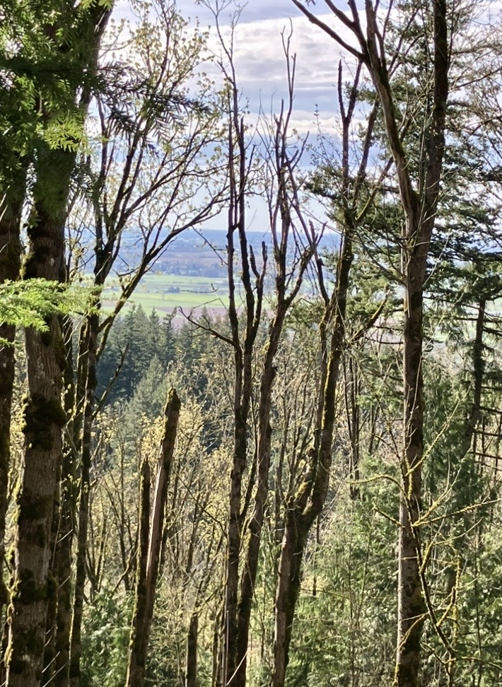 The tree canopy is loaded with buds just waiting to explode into full sized leaves!
