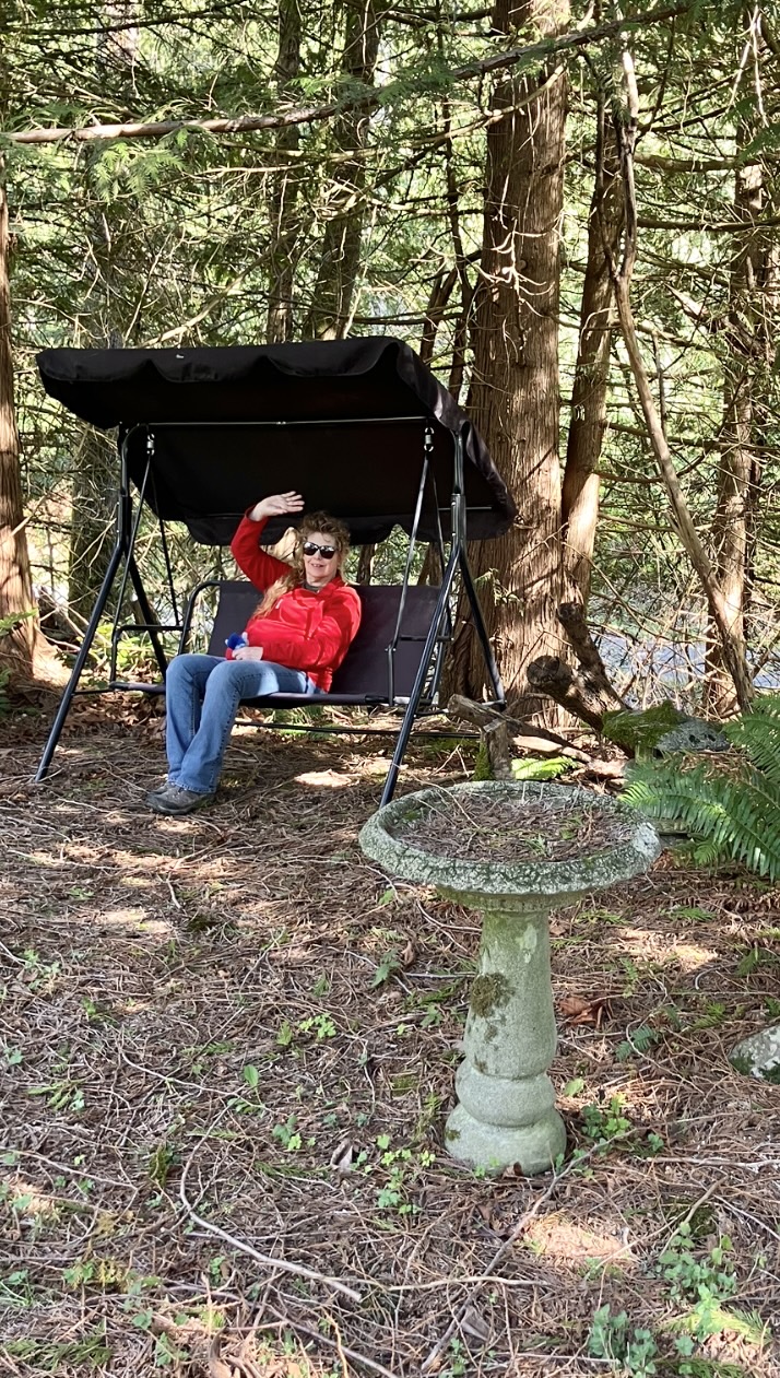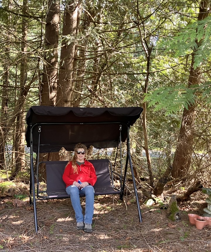 Around the Silvertop home, one of the “Signs” that Spring has really arrived, is setting up Liz’s garden swing!😍