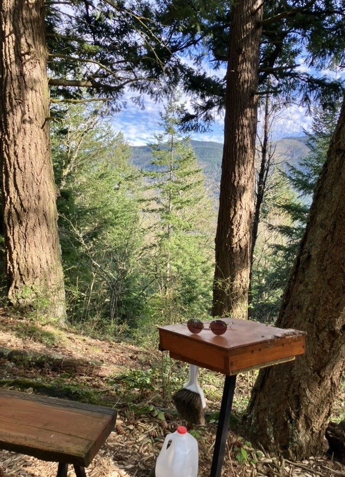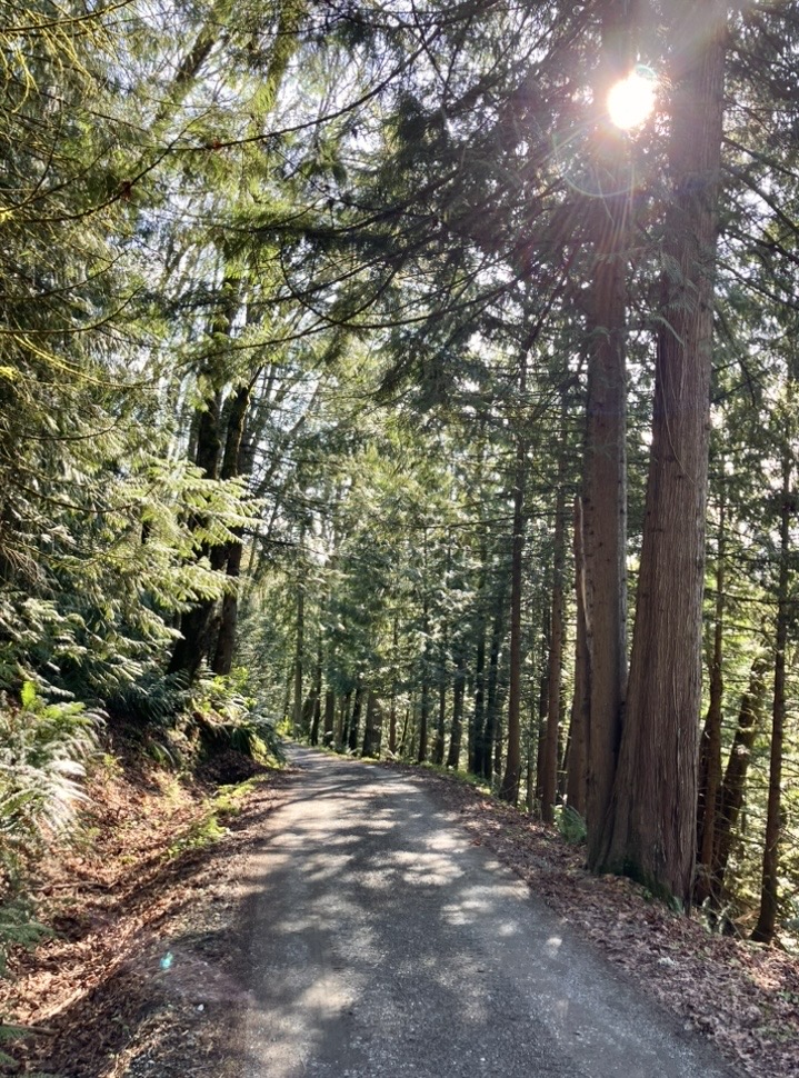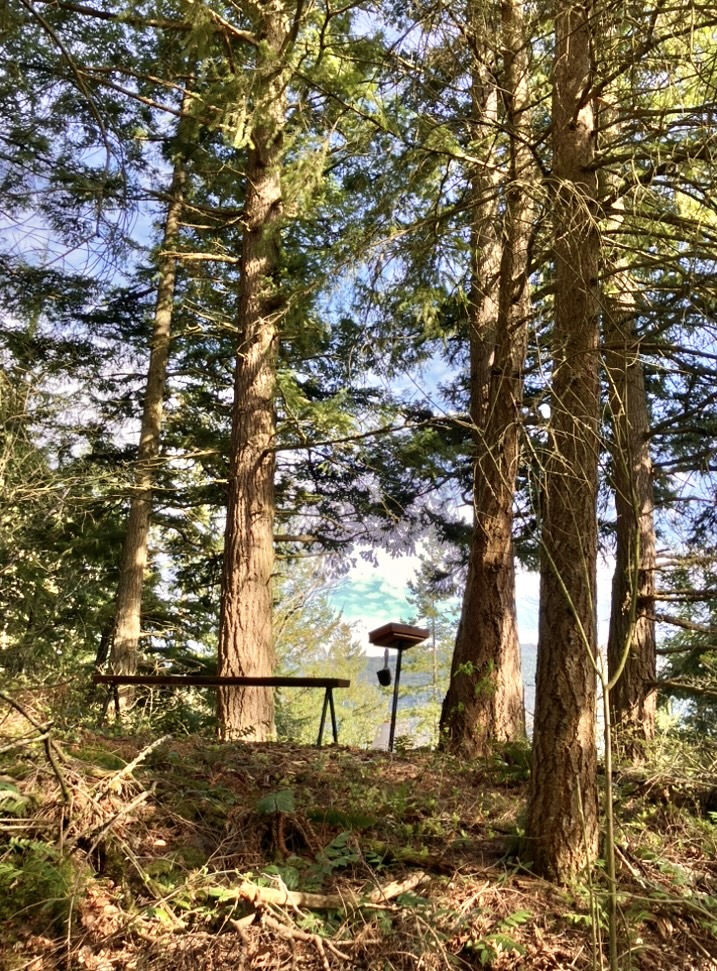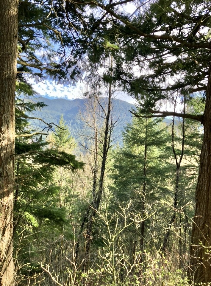 Up top our neighbors Keith and Lynne have placed a wooden bench, so you can take a short rest, and snap photos of the Eastern side of Sumas Mountain!😊