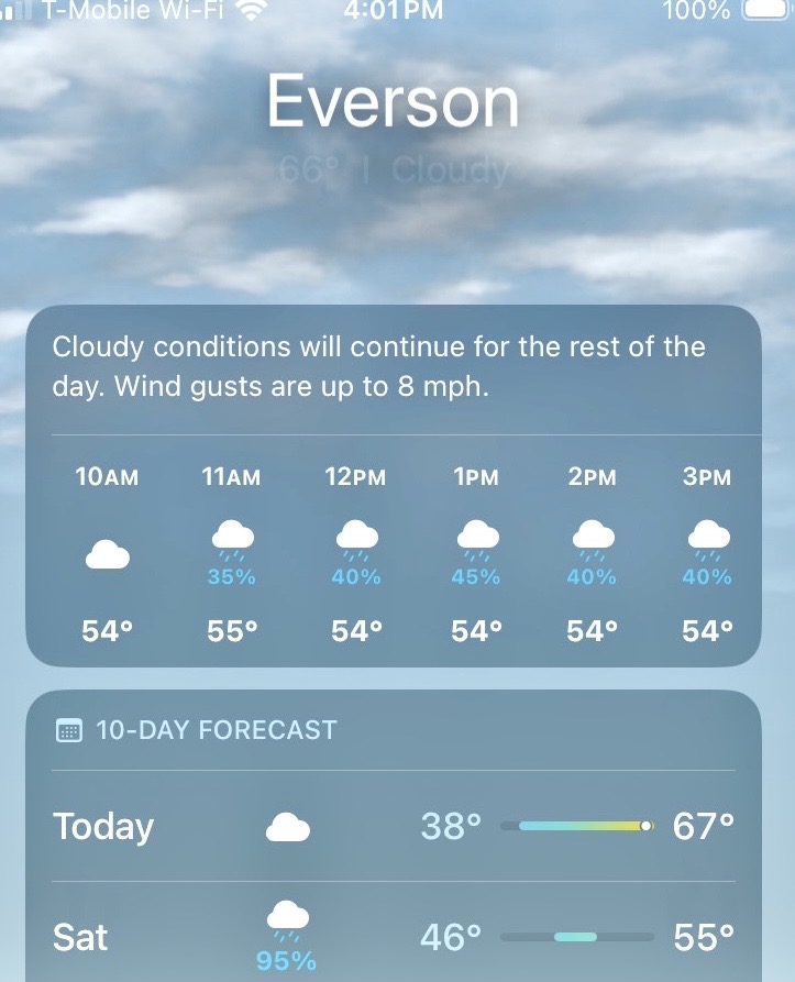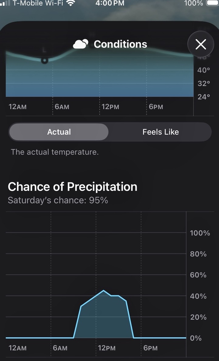 At the bottom of the second photo, you can see that Saturday has a 95% chance of rain!😅