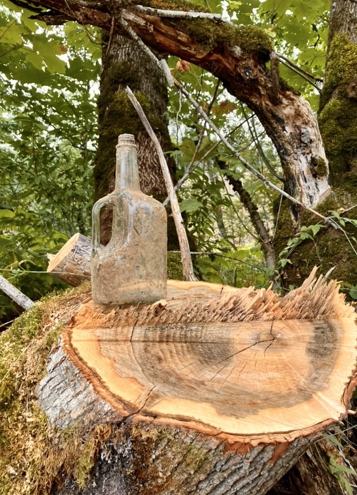 The old green bottle you see in the first photo was unearthed by the loggers just up Silvertops road!☺️