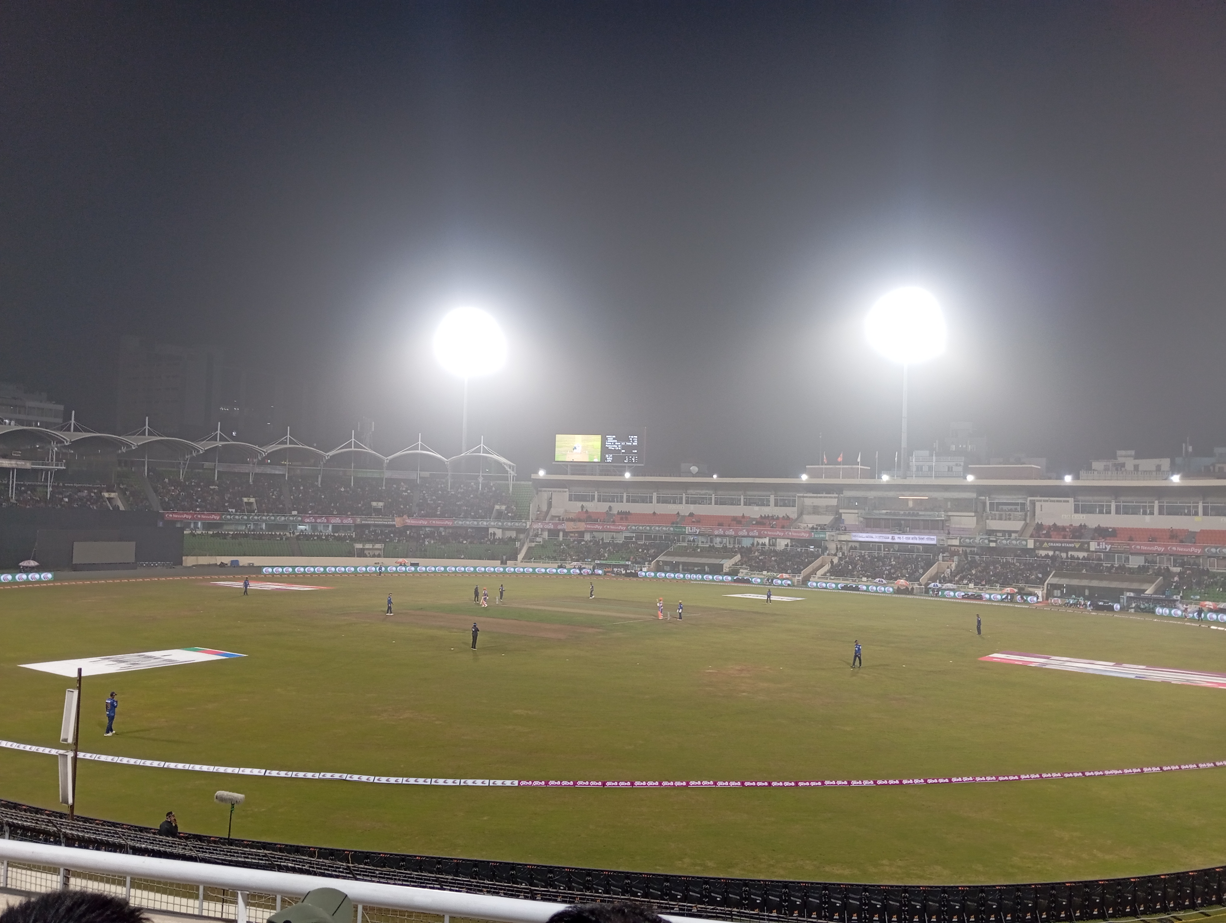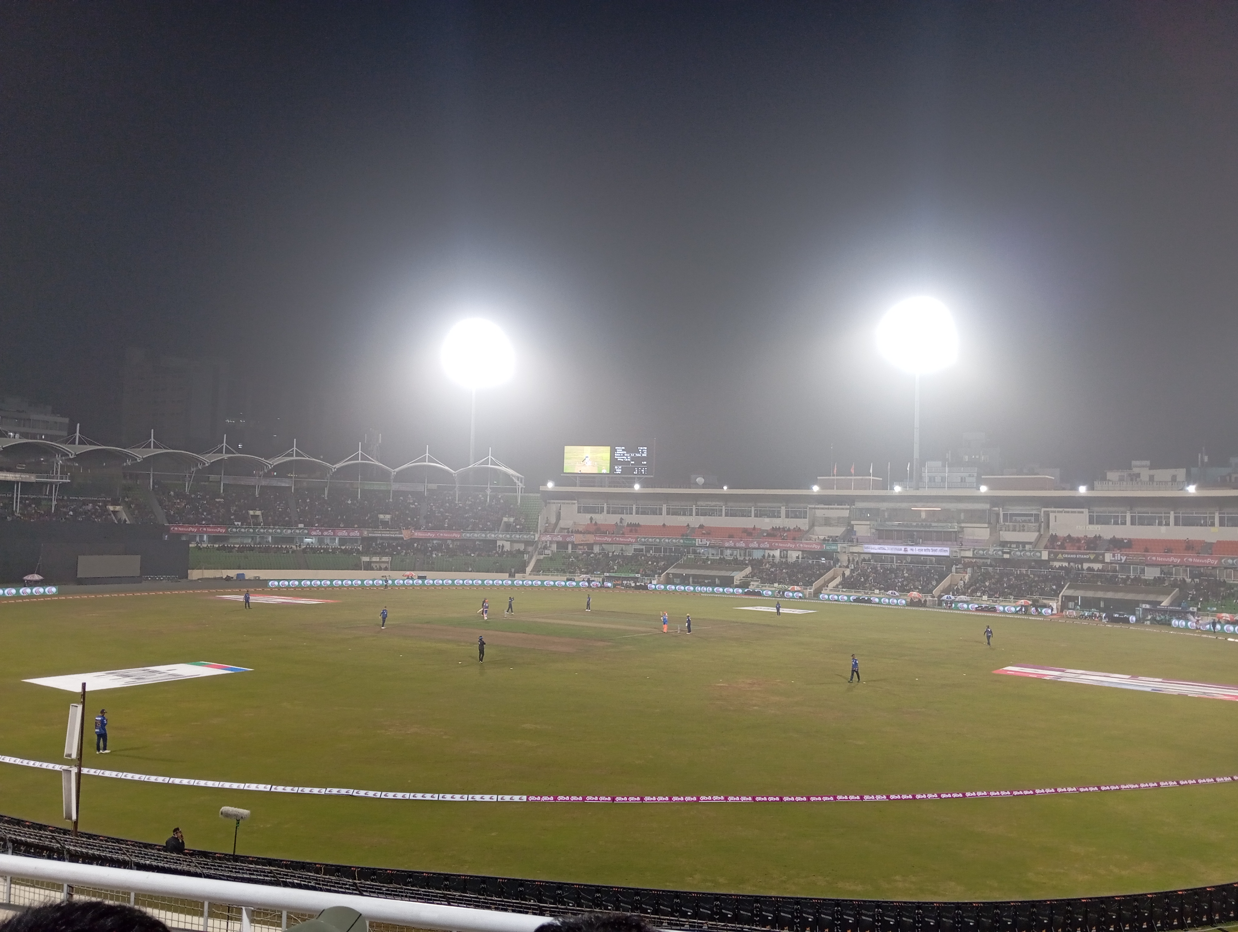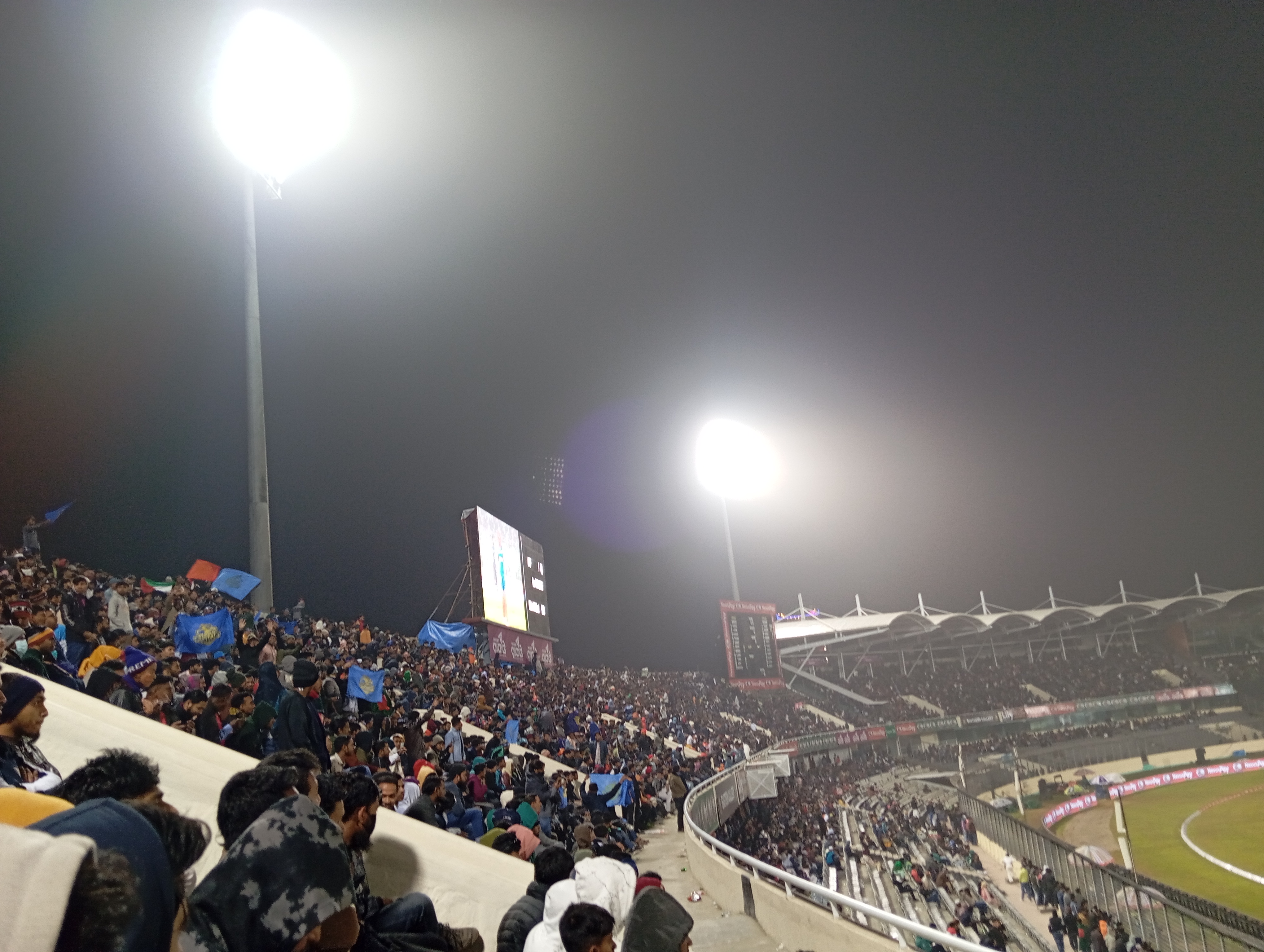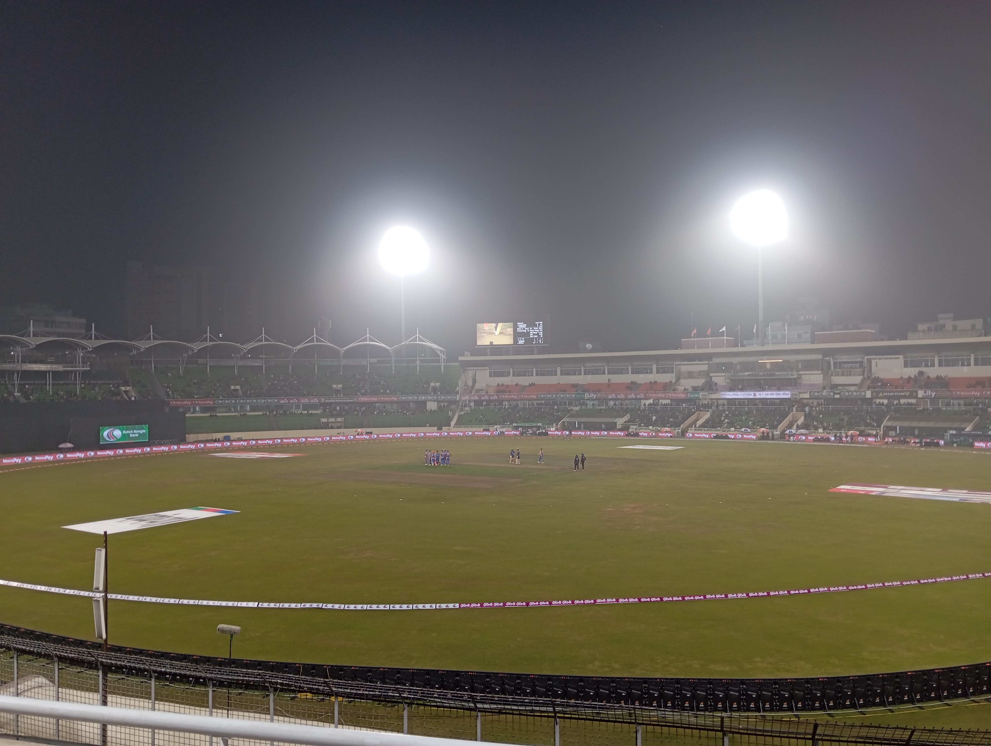 স্টেডিয়ামের ভেতরে গিয়ে দেখি প্রথম ম্যাচের দ্বিতীয় ইনিংস চলছে। যেখানে উসমান খানের সেঞ্চুরিতে বড় সংগ্রহ পেয়েছে চট্টগ্রাম অন্যদিকে টার্গেটে খেলতে নেমে রীতিমতো নাজেহাল অবস্থা রাজশাহীর। পুরো ম্যাচ খেলতে পারেনি রাজশাহী। বেশ কয়েক ওভার বাকি থাকতেই অলআউট হয়ে যায়। এবং বিশাল এক জয় পেয়ে যায় চট্টগ্রাম। এরপর আমরা আমাদের পছন্দমতো একটা সিটে বসি। আমরা চারজন পাশাপাশি বসি। তবে তখনও ম্যাচ শুরু হতে প্রায় ঘন্টাখানেক বাকি। ঐসময় খেলোয়ার রা মাঠে অনুশীলন করছিল আমরা সেটা দেখছিলাম। ওয়েদার বেশ ঠান্ডা ছিল। ঠান্ডা কাটানোর জন্য কফি খাই। এতে করে মোটামুটি কাজ হয়। কিছুক্ষণ আমরা নিজেদের মধ্যে গল্প করি। এরপর টস হয়। টসে ঢাকা ক্যাপিটালস জিতে বোলিং এর সিদ্ধান্ত নেয়।