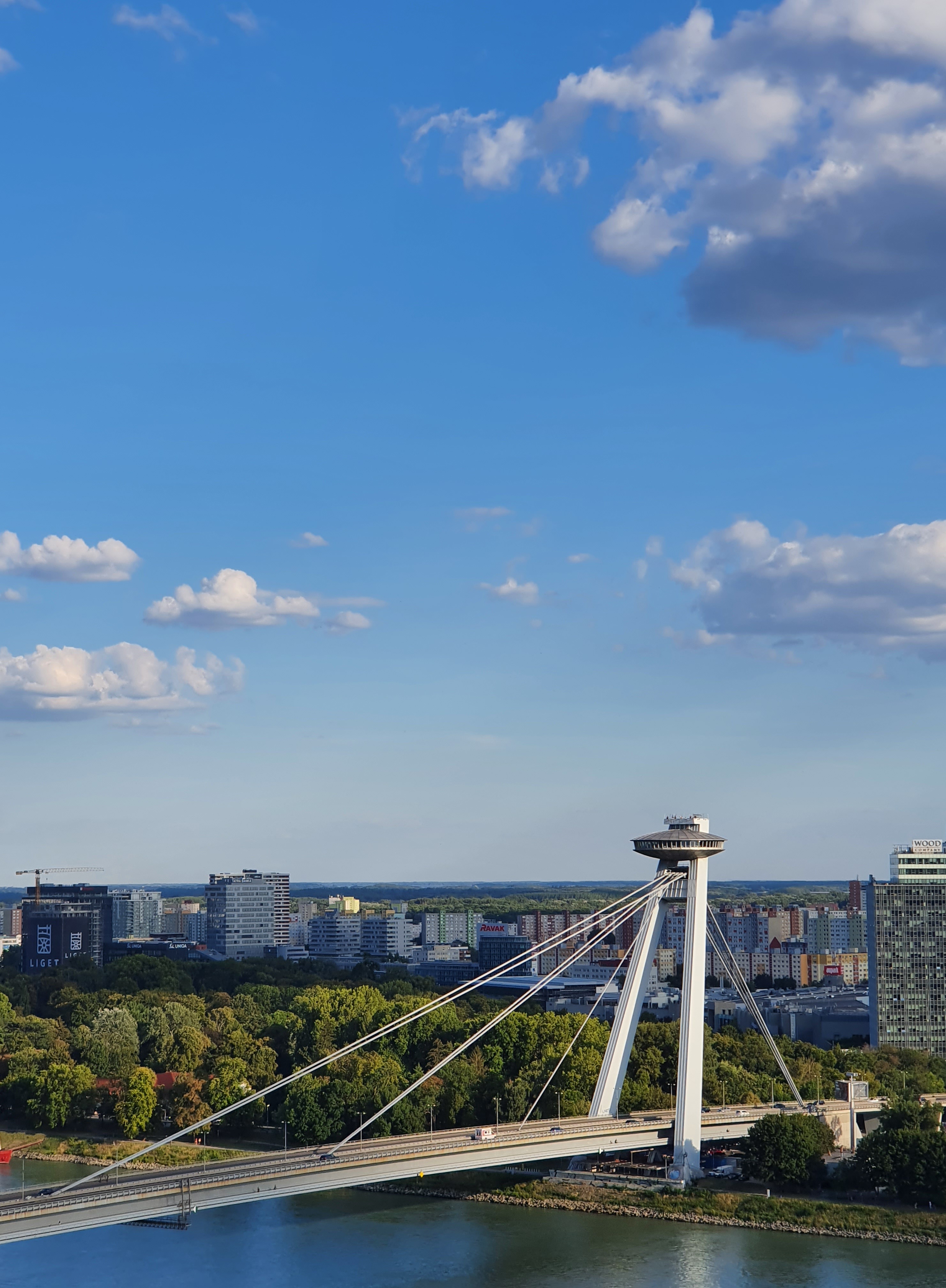 성 마틴 대성당 앞을 지나는 대로는 바로 SNP 다리로 이어진다. 그리고 이 다리의 중간 지점에 95m의 도시 전망대를 만들었는데, 길게 뻗은 두개의 다리 모양과 둥근 접시 모양의 상단부가 꼭 UFO를 연상 시킨다. 두 다리 중 한쪽에 엘리베이터를 설치하여 올라가도록 했다고 하는데, 슬라빈에 가면 외려 UFO가 아래로 보이며 시원한 전망을 보여주었기에 굳이 올라가지는 않았다.