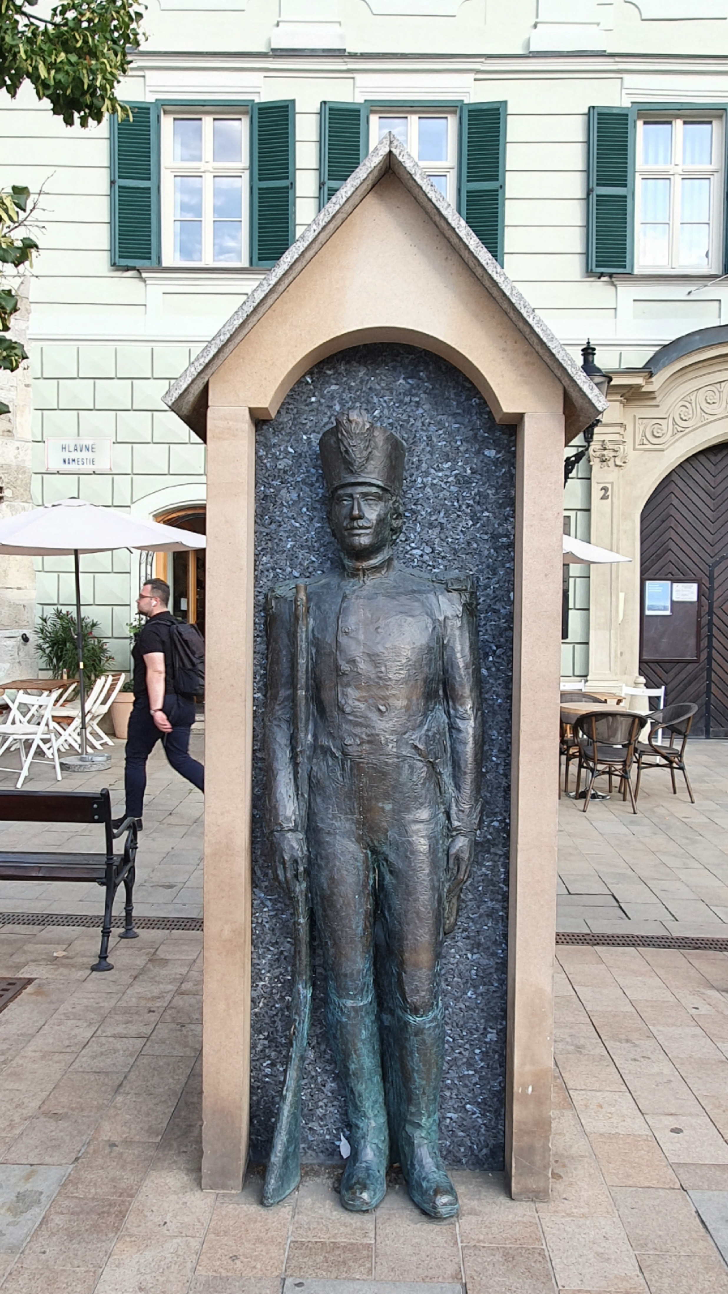 구 시청사 앞에 위치한 이 동상의 자리가 예전 초소가 있던 자리이다. 동상의 옷차림은 후기 르네상스 나폴레옹 시대의 것이라고 한다.