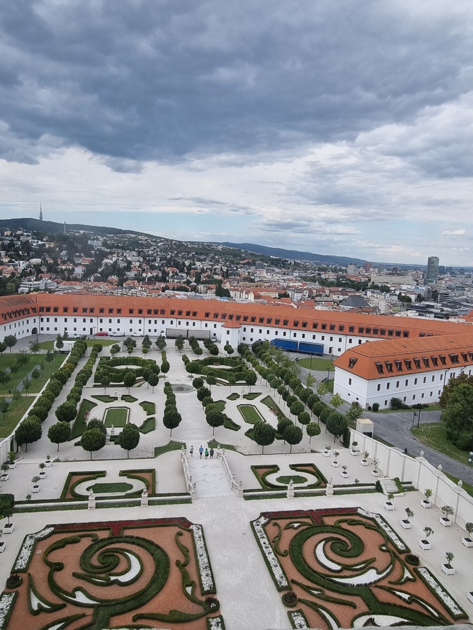 다뉴브강가 85m 높이의 언덕에 위치한 덕분에 탁트인 전망을 자랑하는 성은 잘 가꾸어진 정원도 가지고 있다. 담장으로 둘러진 별도의 안쪽 정원은 마리아 테레지아 시기의 모습을 재구성한 공간이다. 그 외에 강가 쪽 두터운 성벽 안으로너른 잔디밭과 키큰 나무들이 있는 정원은 도시의 전망대 역할을 하기에 충분한 곳이다.