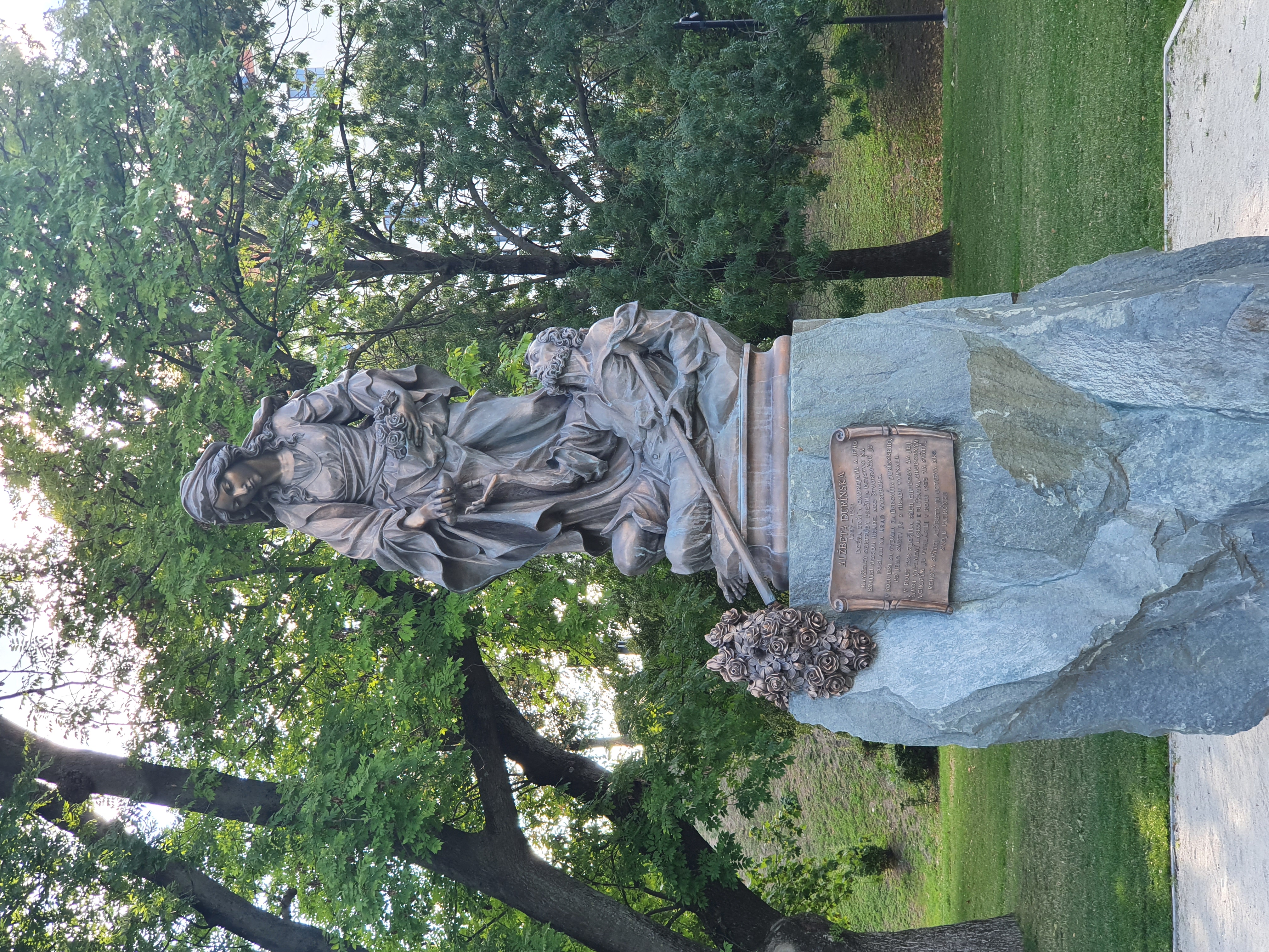 이 잔디밭에 동상이 하나 있다. 성 엘리자베스 Elizabeth의 동상이다. 왕 앤드류 2세 Andrew 2th 와 거트루드 Gertrude의 딸이었던 엘리자베스는 4살때 브라티슬라바 성으로 보내져 어린시절을 보냈다. 그의 남편 튀링겐의 루드비히 Ludwig of Thuringia가 사망한 후, 그녀는 청빈을 맹세하고 어려운 사람들을 위해 남은 생을 살았다. 1235년 성인으로 시성된 그녀는 특히 가난한 사람들과 병자들에게 존경을 받는다. 엘리자베스 라는 세례명은 많이 들어봤는데, 이곳에서 동상으로나마 만나게 될 줄은 몰랐다.