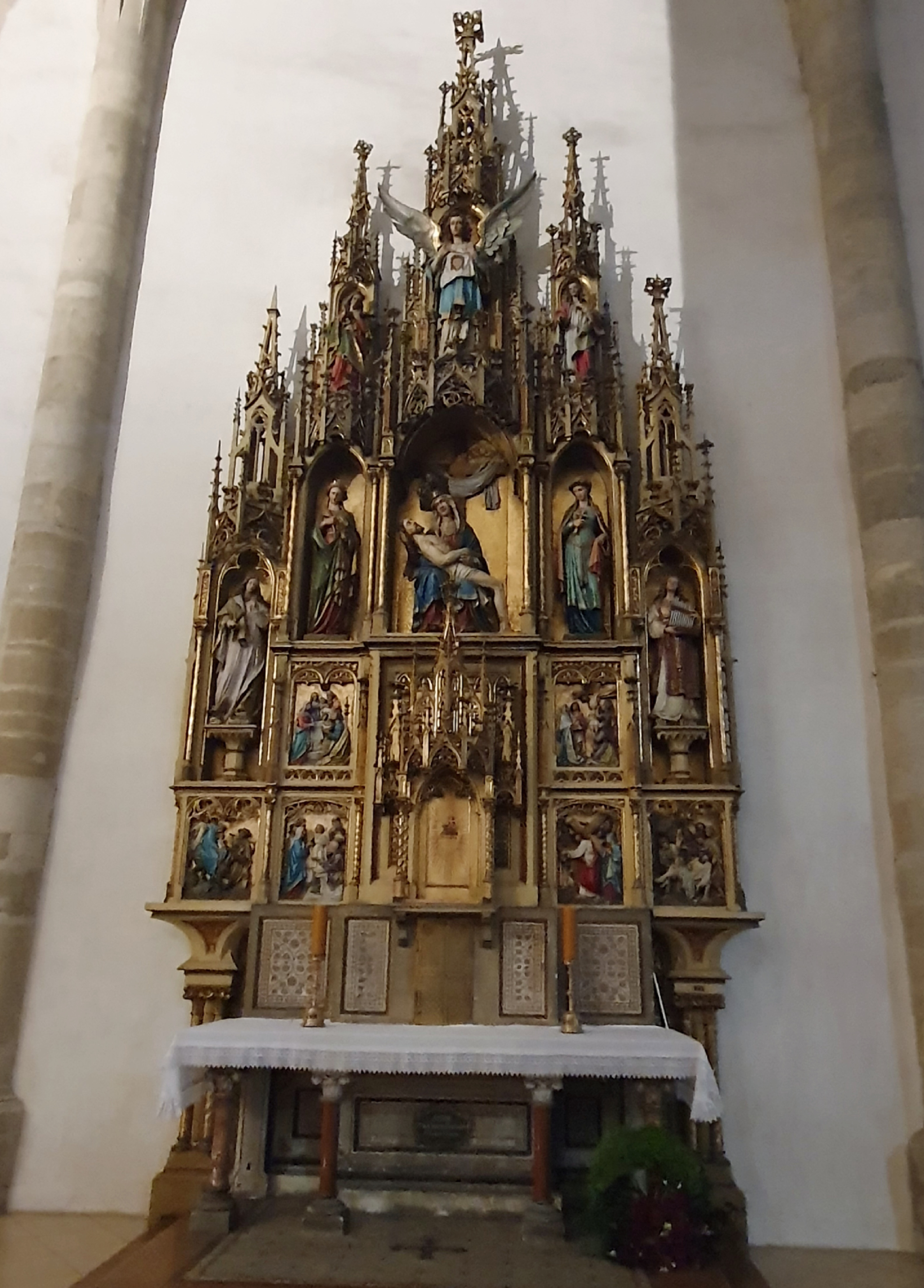 성당은 1452년 고딕양식으로 건축되었다. 성벽에 접해있어 마을의 방어 요새 역할도 하고, 1563-1830년 사이에는 헝가리 왕의 대관식이 치러지던 곳이어서 마리아 테레지아 역시 이곳에서 대관식을 치렀다. 그리고 베토벤의 장엄미사가 첫번째로 연주된 곳이기도 하다.