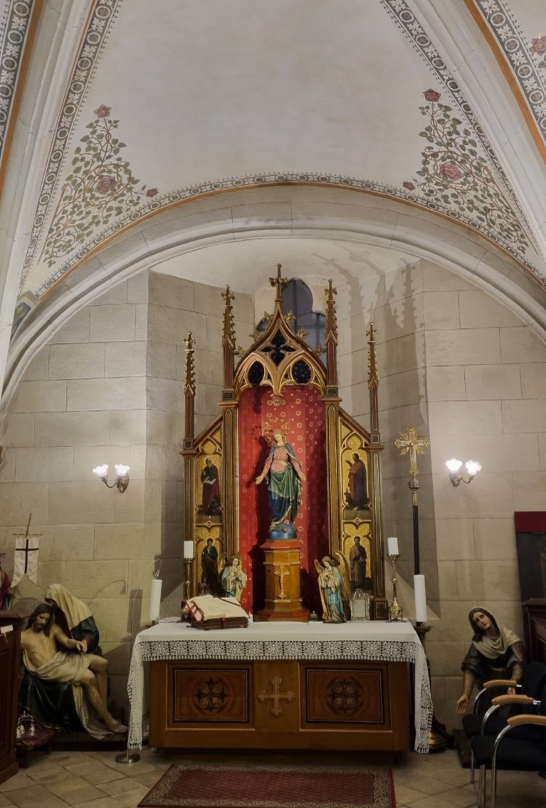 깊은 제단을 가지고 있는 것이 특징적 이고, 선명한 뜻을 보여주는 스테인드글라스는 단지 화려하다고 말하기엔 부족한 품격이 전해진다. 제단화 역시 전달하려는 의미가 확실하여 일반 신자들이 보기에 훨씬 수월하게 그러나 고전적인 느낌이 나는 모습 이었다.