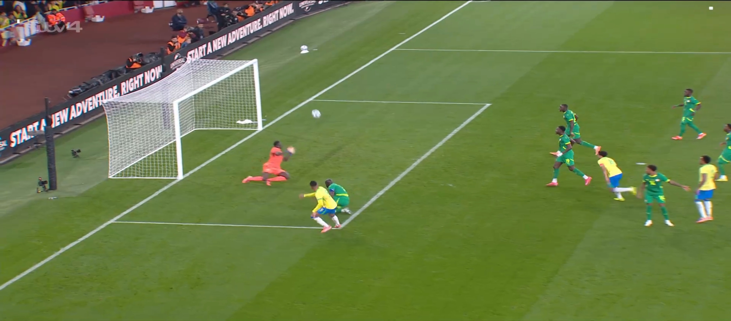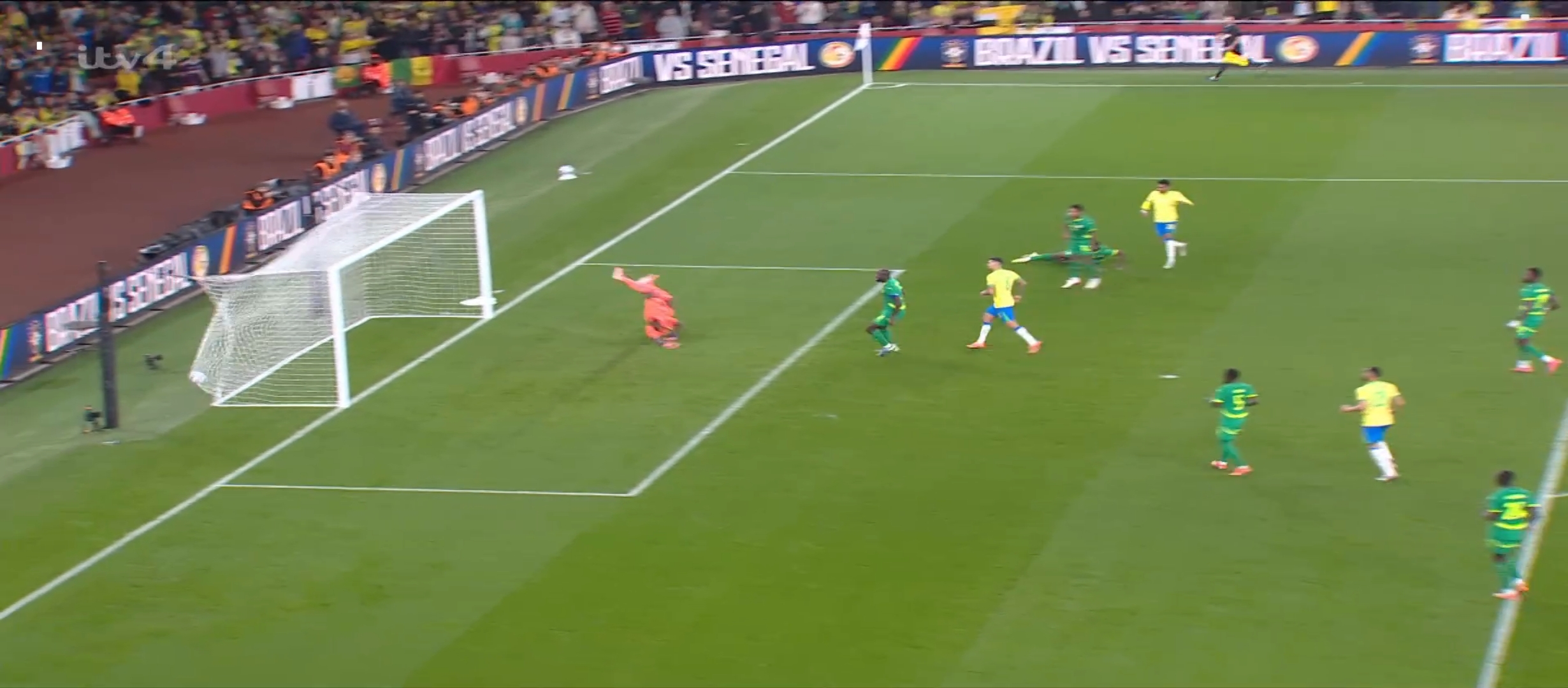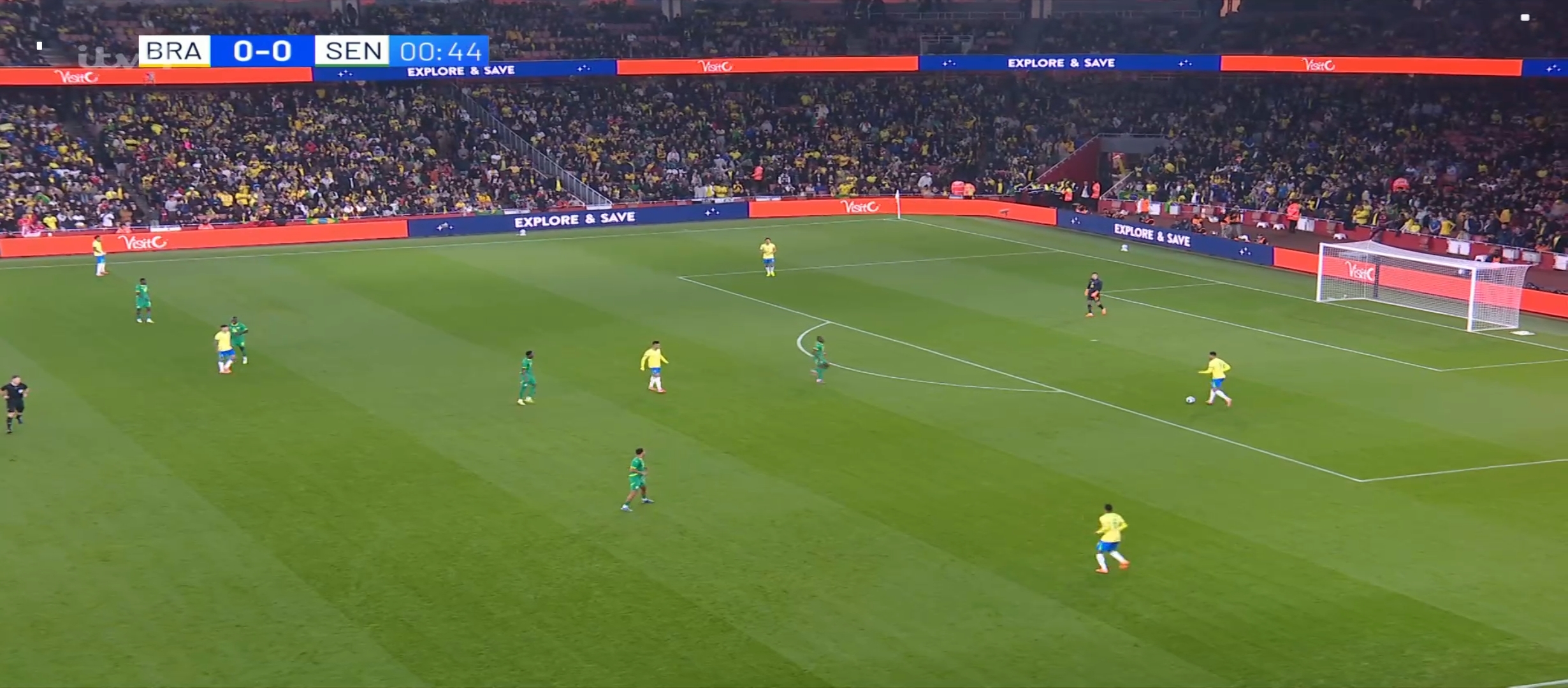 ম্যাচের ২৮ মিনিটের সময় ১৮ বছরের এস্তেভাও দারুণ একটা গোল করে। এই গোলে ১-০ তে এগিয়ে যায় ব্রাজিল। এর কিছুক্ষণ পর ব্রাজিল একটা ফ্রি কিক পায়। ফ্রি কিক নেয় রদ্রিগো। বলটা দারুণভাবে বাড়িয়ে দেয় ক্যাসিমিরো এর দিকে। এবং ক্যাসিমিরোর দারুণ ফিনিশিং। ২-০ তে এগিয়ে যায় ব্রাজিল। প্রথমার্ধের খেলা শেষ হয়। দ্বিতীয়ার্ধে খেলতে নেমে ব্রাজিলের খেলা কিছুসময় ছন্নছাড়া লাগলেও পরবর্তীতে আবার তারা গুছিয়ে খেলতে থাকে। এই সময় দারুণ কিছু সুযোগ পায় ব্রাজিল। ভিনিসিয়াস রদ্রিগো রা মিলে চমৎকার কিছু আক্রমণ করে। কিন্তু কোন লাভ হয়নি। আর কোন গোল করতে পারেনি ব্রাজিল। অন্যদিকে সেনেগাল কিছু আক্রমণ করলেও তারাও কোন গোল পায়নি। খেলা শেষ হয় ব্রাজিল ২-০ গোলের জয় নিয়ে মাঠ ছাড়ে।