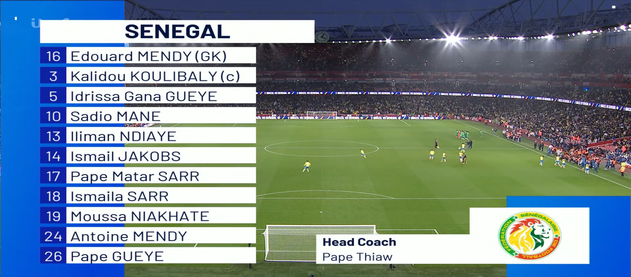 রাইট উইং এর রাফিনহা ইঞ্জুরিতে। ঐ জায়গাই ছিল ১৮ বছর বয়সী এস্তেভাও উইলিয়ান। অন্যদিকে সেনেগাল দলে সাদিও মানে, কুলিবালি, মেন্ডির মতো কিছু বড় নাম রয়েছে। যাইহোক খেলাটা শুরু হয় বাংলাদেশ সময় রাত ১০ টার সময়। প্রথম কয়েক মিনিট সেনেগাল কিছুটা আক্রমনাত্মক খেললেও কিছুক্ষণ পরেই ব্রাজিল ম্যাচে আধিপত্য বিস্তার করতে শুরু করে। বামদিক থেকে ভিনিসিয়াসের একের এক বল নিয়ে ভেতরে মুভ করা সত্যি দারুণ ছিল। ম্যাথিউস কুনহা দুইটা দারুণ সুযোগ পায়। কিন্তু দুইটাই বলই গোলাবারে লেগে ফিরে আসে। দূভার্গ্য বলা যায়। এরপর ভিনিসিয়াস রদ্রিগো রা বেশ কিছু চেষ্টা করেছে কিন্তু কোন লাভ হয়নি। অবশেষে গোলের দেখা পায় ব্রাজিল।