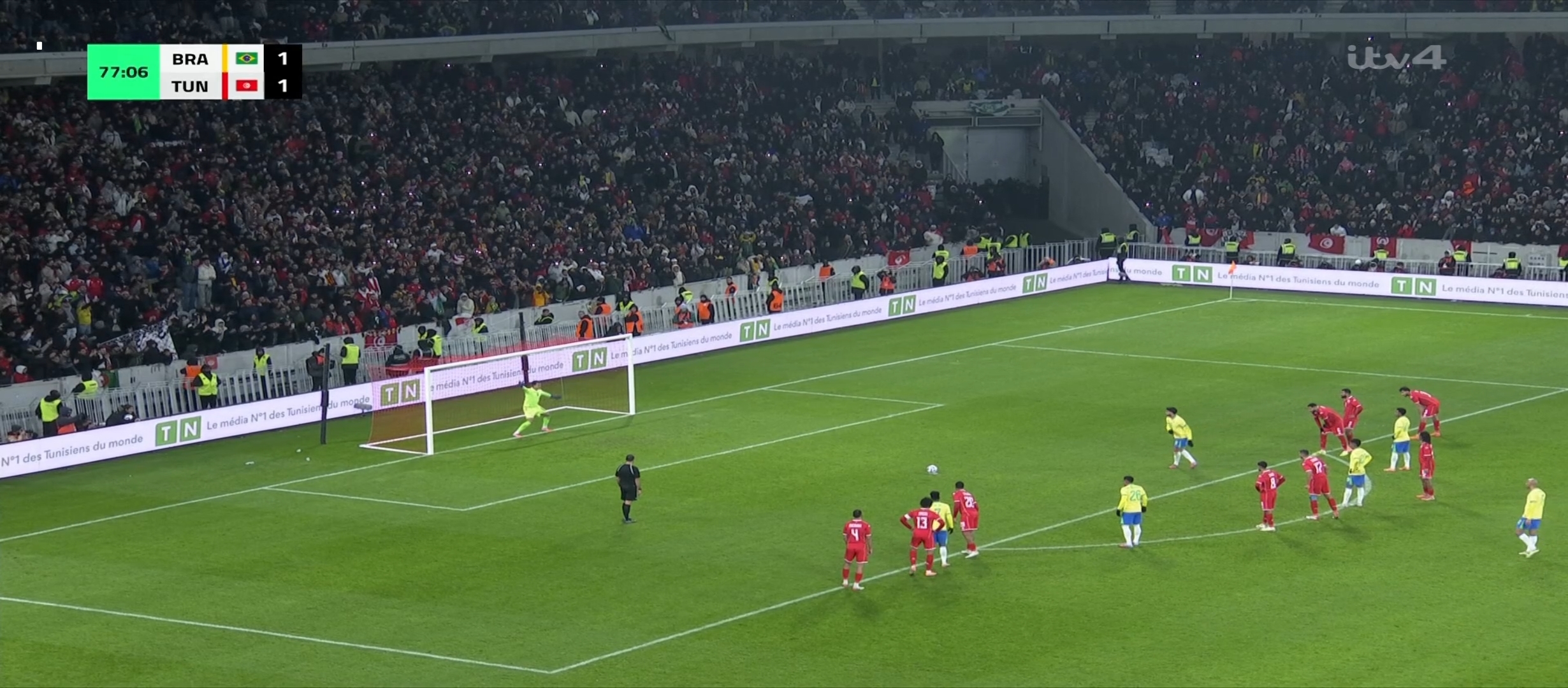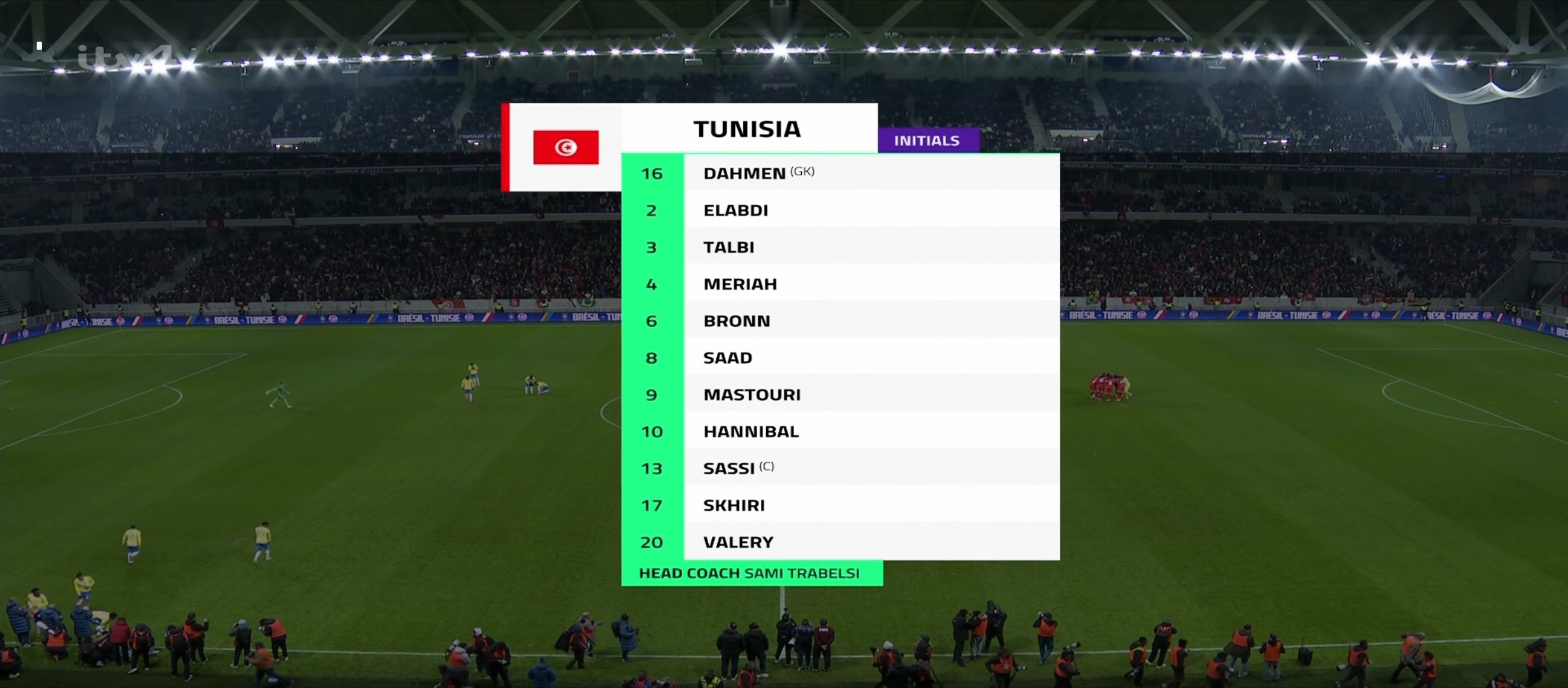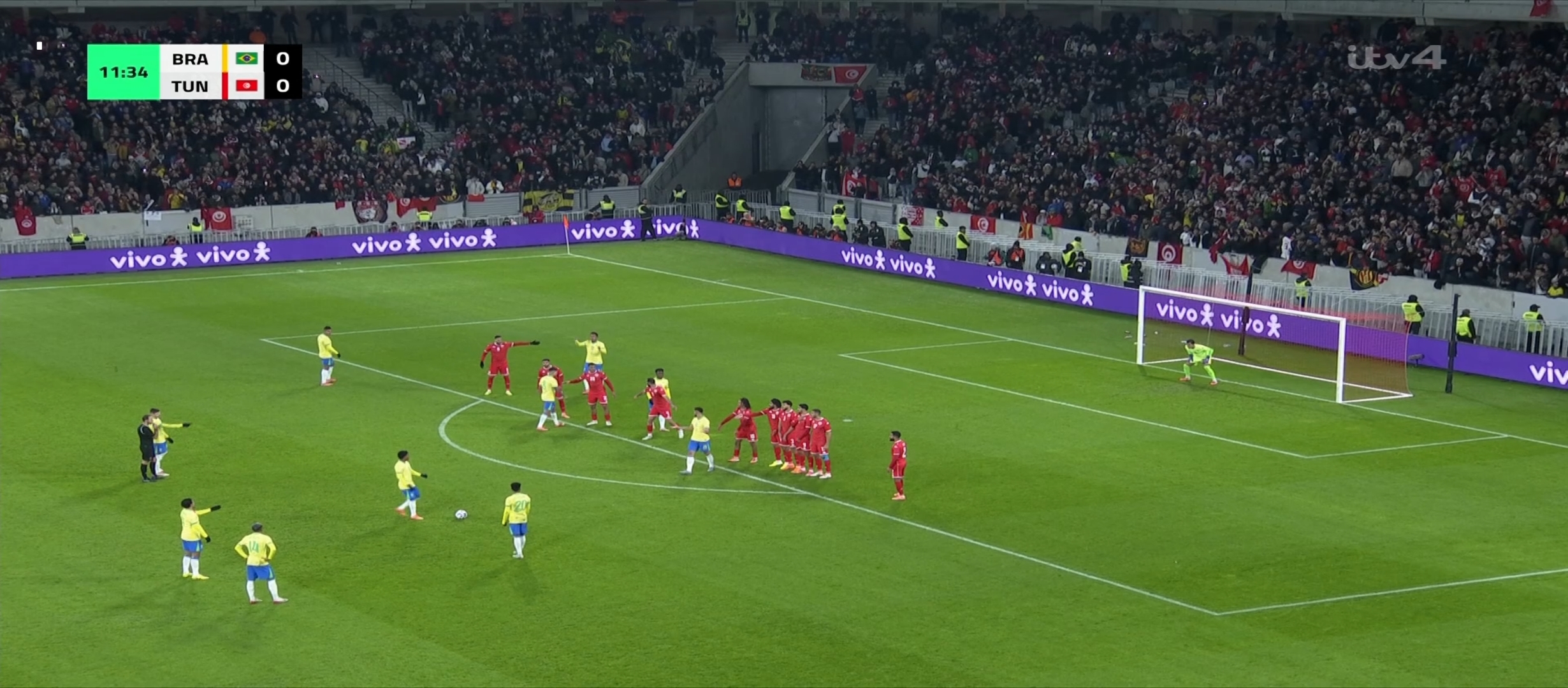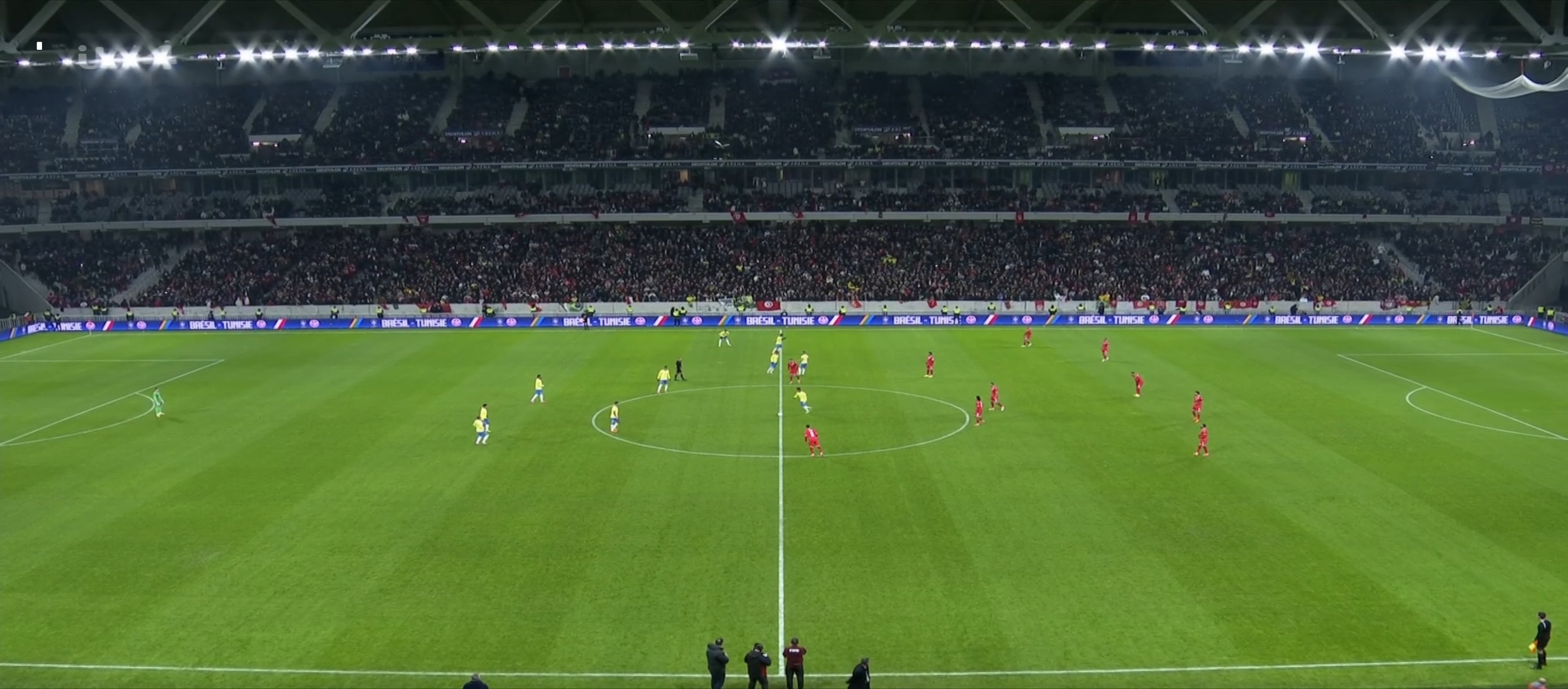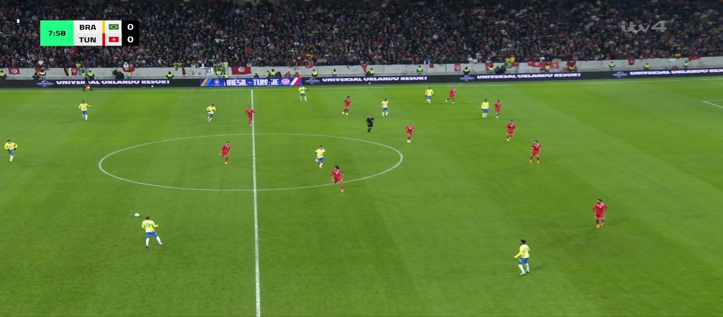 বাংলাদেশ সময় রাত দেড়টার সময় খেলা শুরু হয়। প্রথমে শুরুতে বেশ এলোমেলো খেলছিল ব্রাজিল। সেরকম বল রাখতে পারছিল না। এবং তিউনেশিয়া একের পর এক আক্রমণ চালিয়ে যেতে থাকে। ফলাফল তারা বেশ কিছু আক্রমণ করে। ম্যাচের ২৩ মিনিটের সময় ব্রাজিলের ডিফেন্ডার দের ভুলে একটা গোল করে ফেলে তিউনেশিয়া। ০-১ গোলে এগিয়ে যায় তিউনেশিয়া। এরপর ব্রাজিল খেলায় ফিরতে থাকে। গুছিয়ে খেলে আক্রমণে যেতে থাকে। কিন্তু তিউনেশিয়ার হাই ডিফেন্সিভ ফর্মেশনের কাছে খুব একটা সুবিধা করতে মোটেই পারছিল না। রদ্রিগো বেশ কিছু শর্ট নেয় দূর থেকে। কোন সেগুলো খেলোয়ার এর গায়ে লেগে প্রতিহত হয়। ম্যাচের ৪৪ মিনিটের দিকে তিউনেশিয়ার একজন খেলোয়ারের হ্যান্ডবল হয় ডিবক্সের মধ্যে।